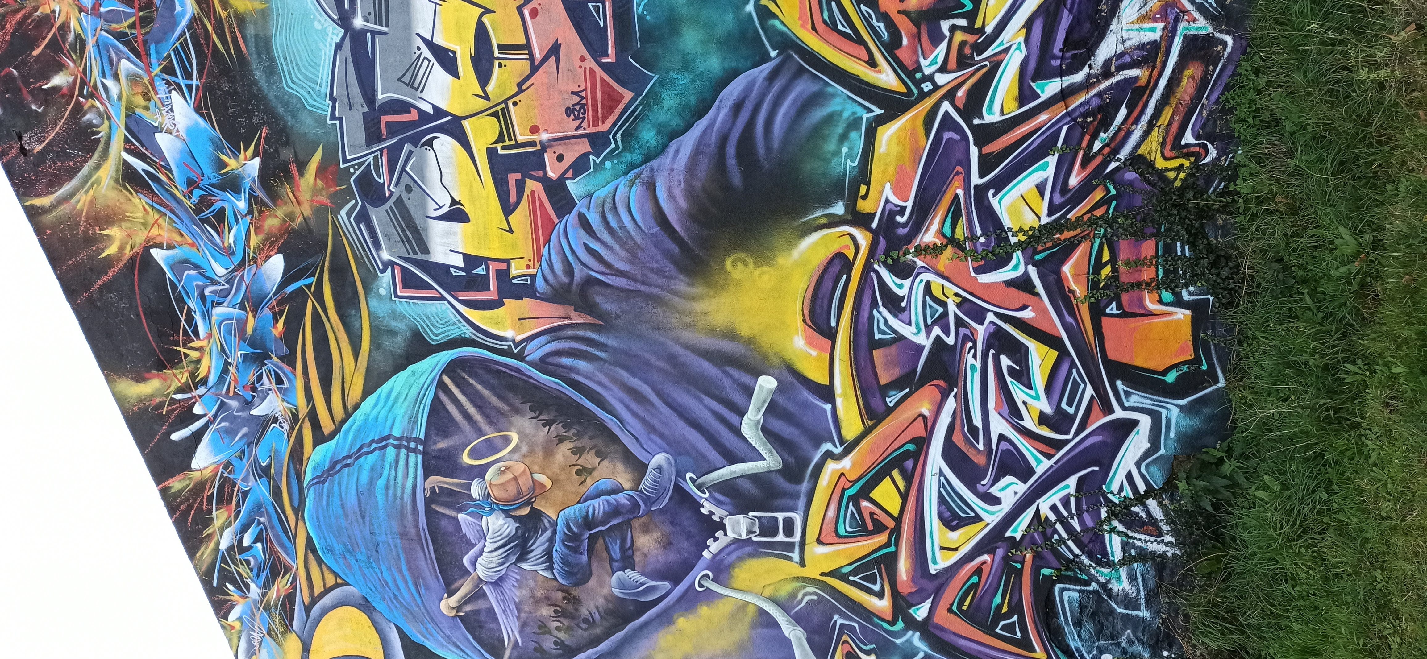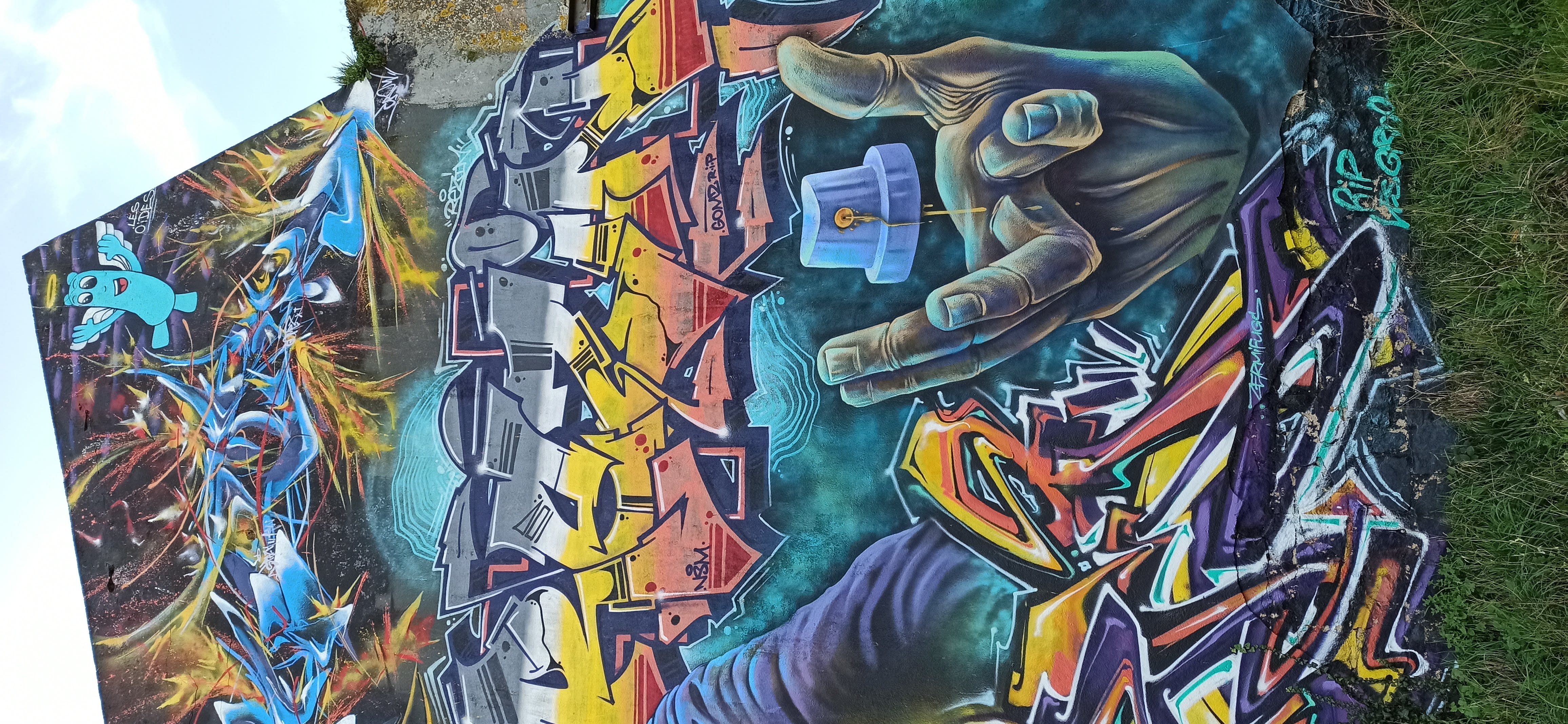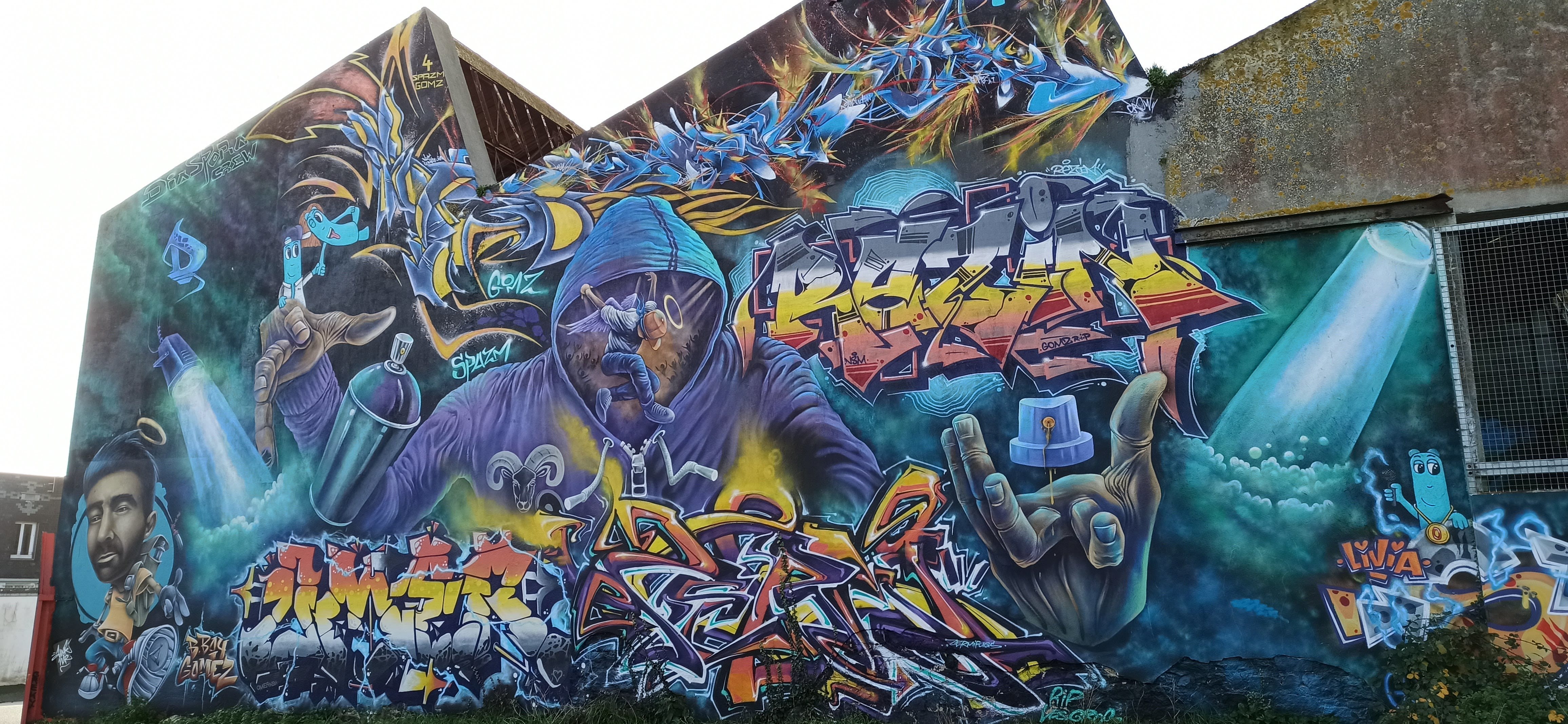 The artwork is of graffiti type. You can admire it in the city of Lorient in France and more precisely here : 2 Rue Florian Laporte, 56100 Lorient, France.