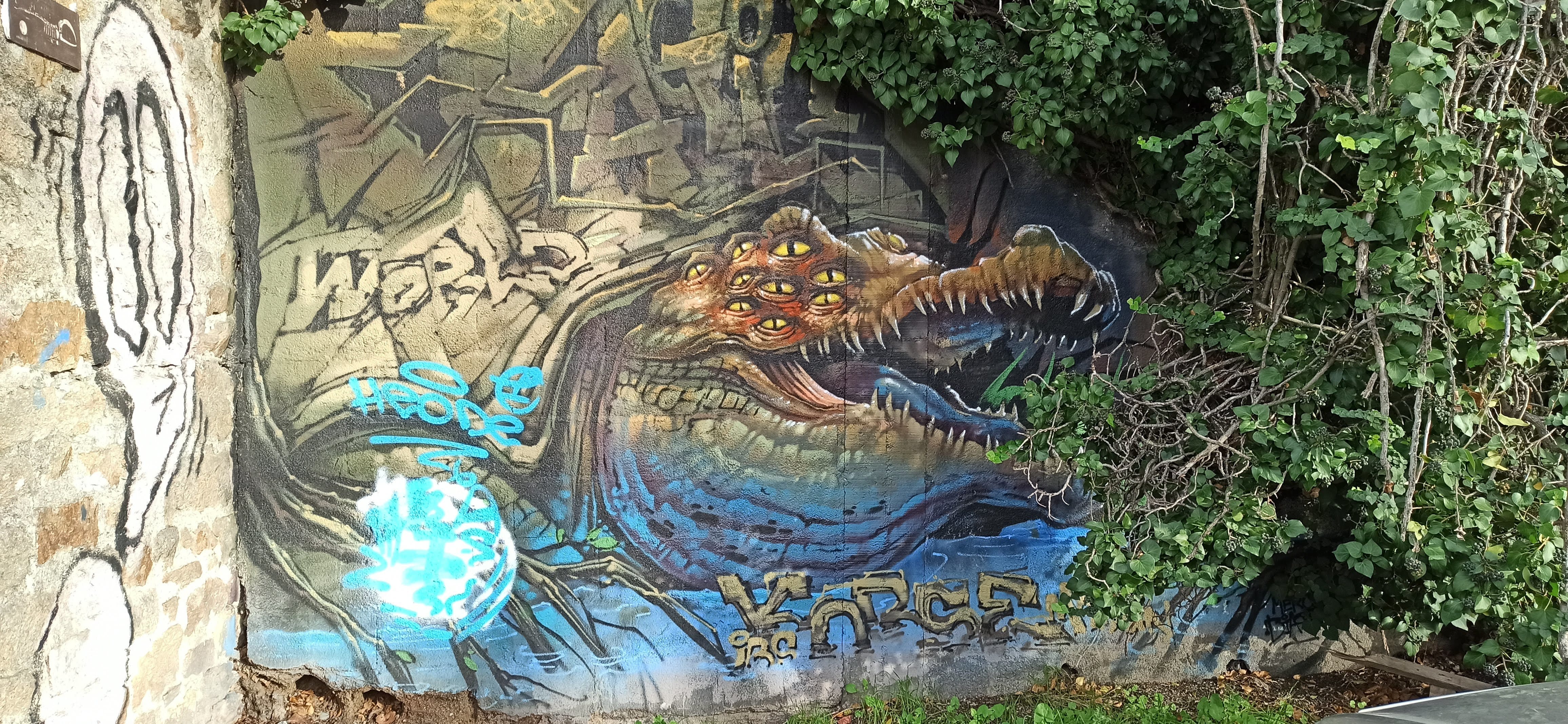 The artwork is of graffiti type. You can admire it in the city of Lorient in France and more precisely here : Boulevard Nail, 56100 Lorient, France.