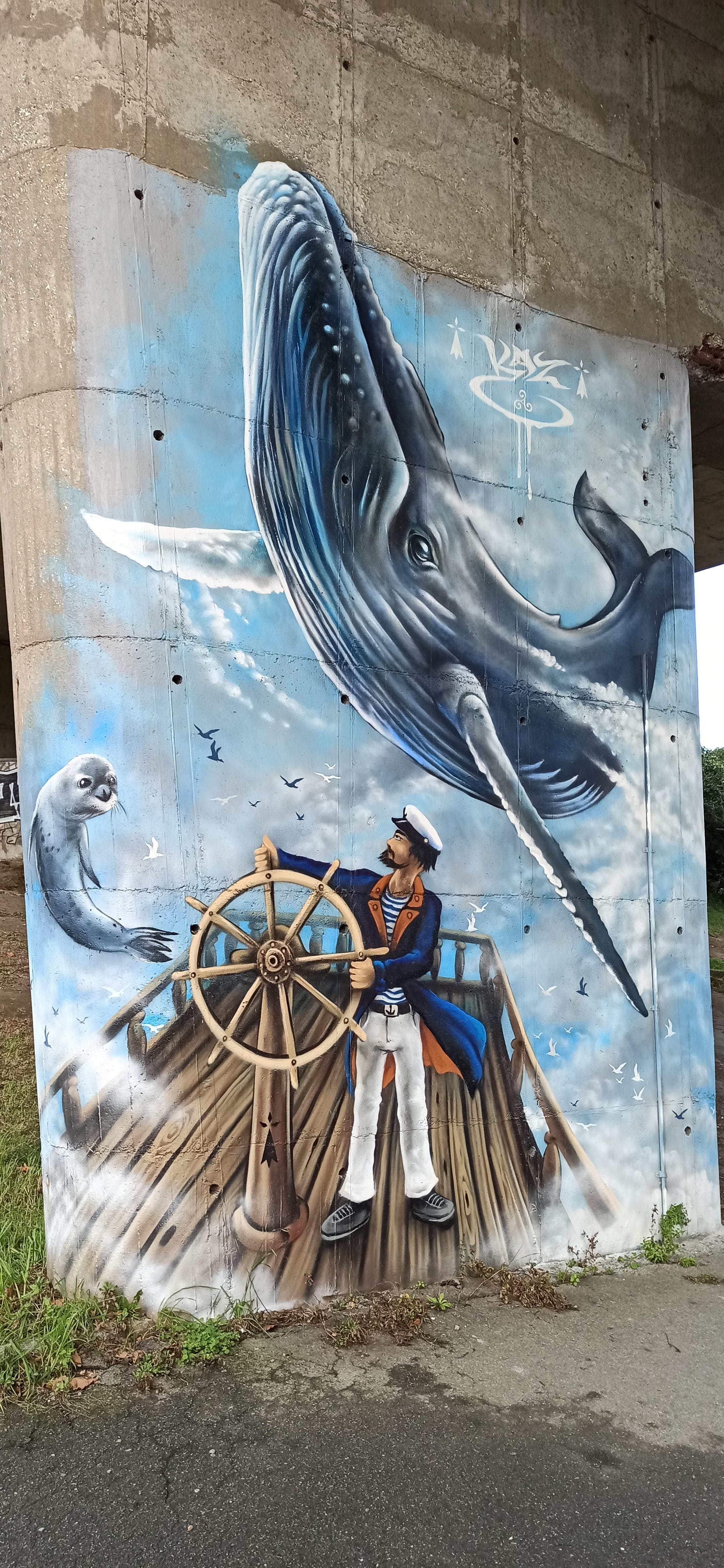 The artwork is of graffiti type. You can admire it in the city of Lorient in France and more precisely here : 65 Boulevard Cosmao Dumanoir, 56100 Lorient, France.