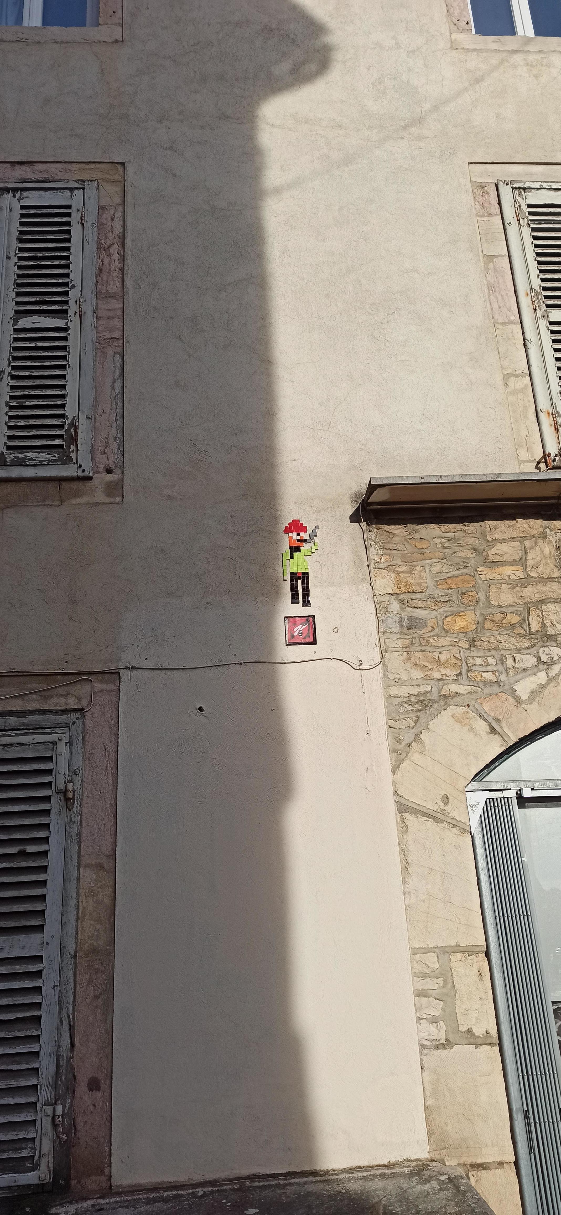 The artwork is of graffiti type. You can admire it in the city of Dijon in France and more precisely here : 9 Rue Auguste Comte, 21000 Dijon, France.