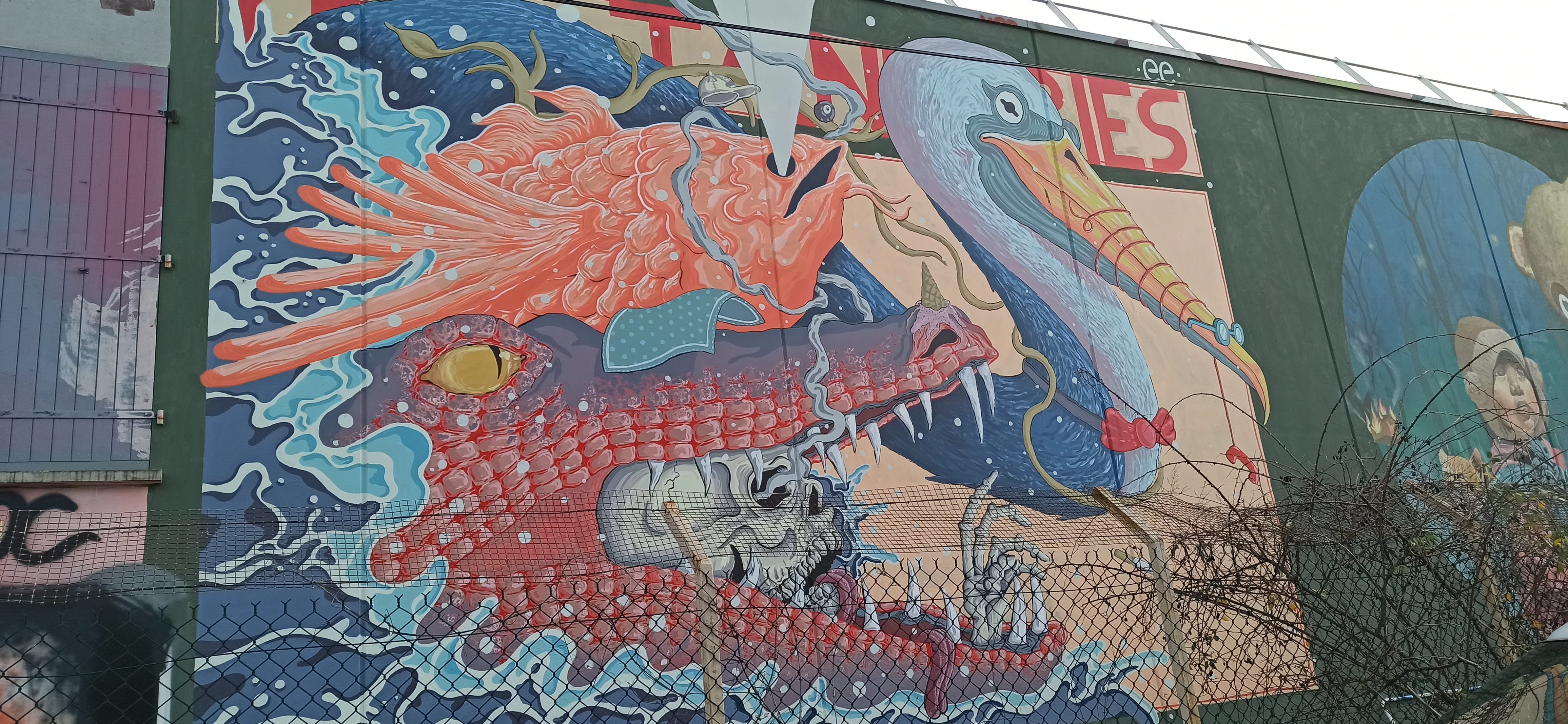 The artwork is of graffiti type. You can admire it in the city of Dijon in France and more precisely here : 37 Rue des Ateliers, 21000 Dijon, France.