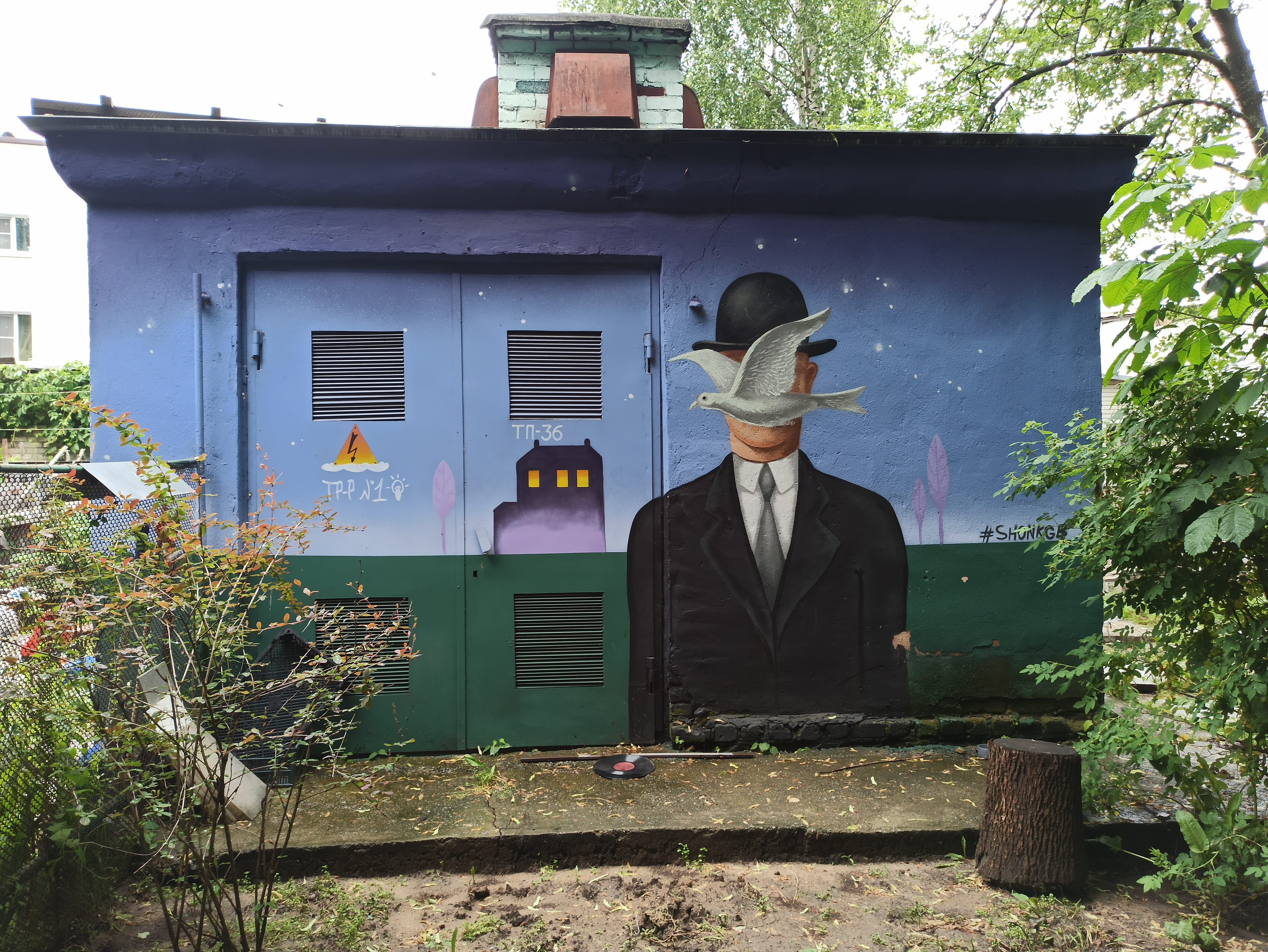 The artwork is of graffiti type. You can admire it in the city of Korolyov in Russia and more precisely here : Trudovaya st. 4, 141070 Korolyov, Moscow region, Russia.