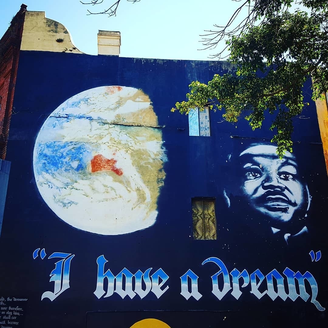 The artwork I have a dream...we have the dreaming. is of graffiti type. You can admire it in the city of Sydney in Australia and more precisely here : King street.