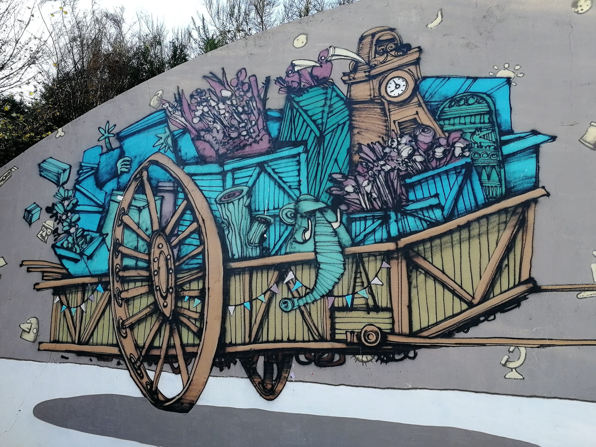 The artwork is of graffiti type. You can admire it in the city of Saint-Herblain in France and more precisely here : 1 Rue de l'Euphrate, 44800 Saint-Herblain, France.