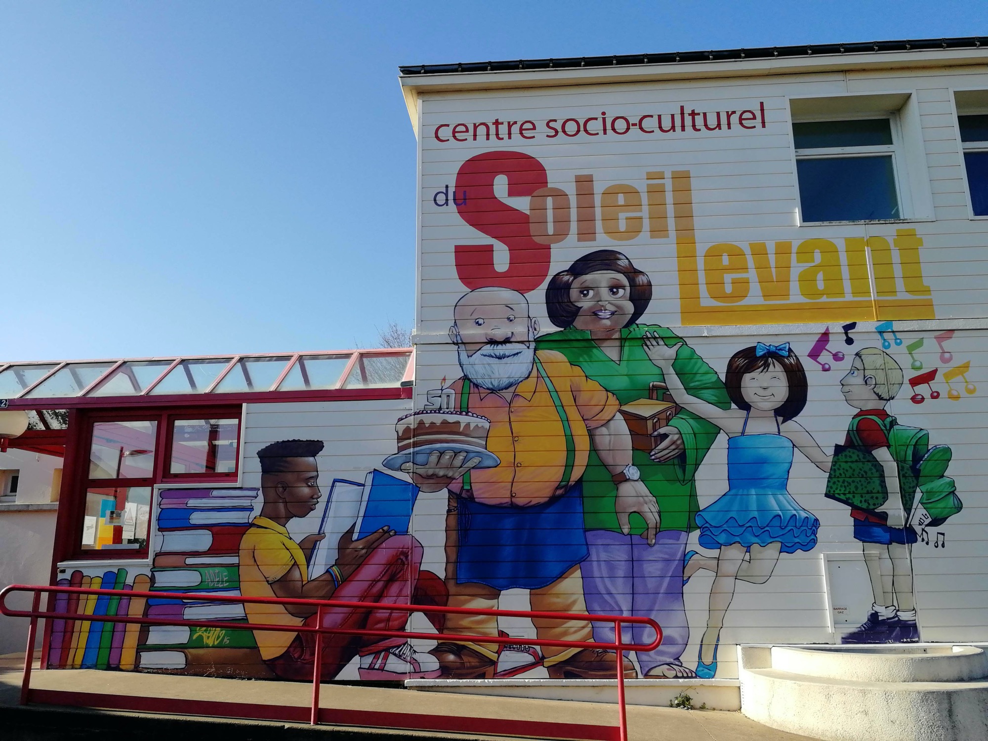 The artwork Soleil levant is of graffiti type. You can admire it in the city of Saint-Herblain in France and more precisely here : 44 Rue de la Blanche, 44800 Saint-Herblain, France.