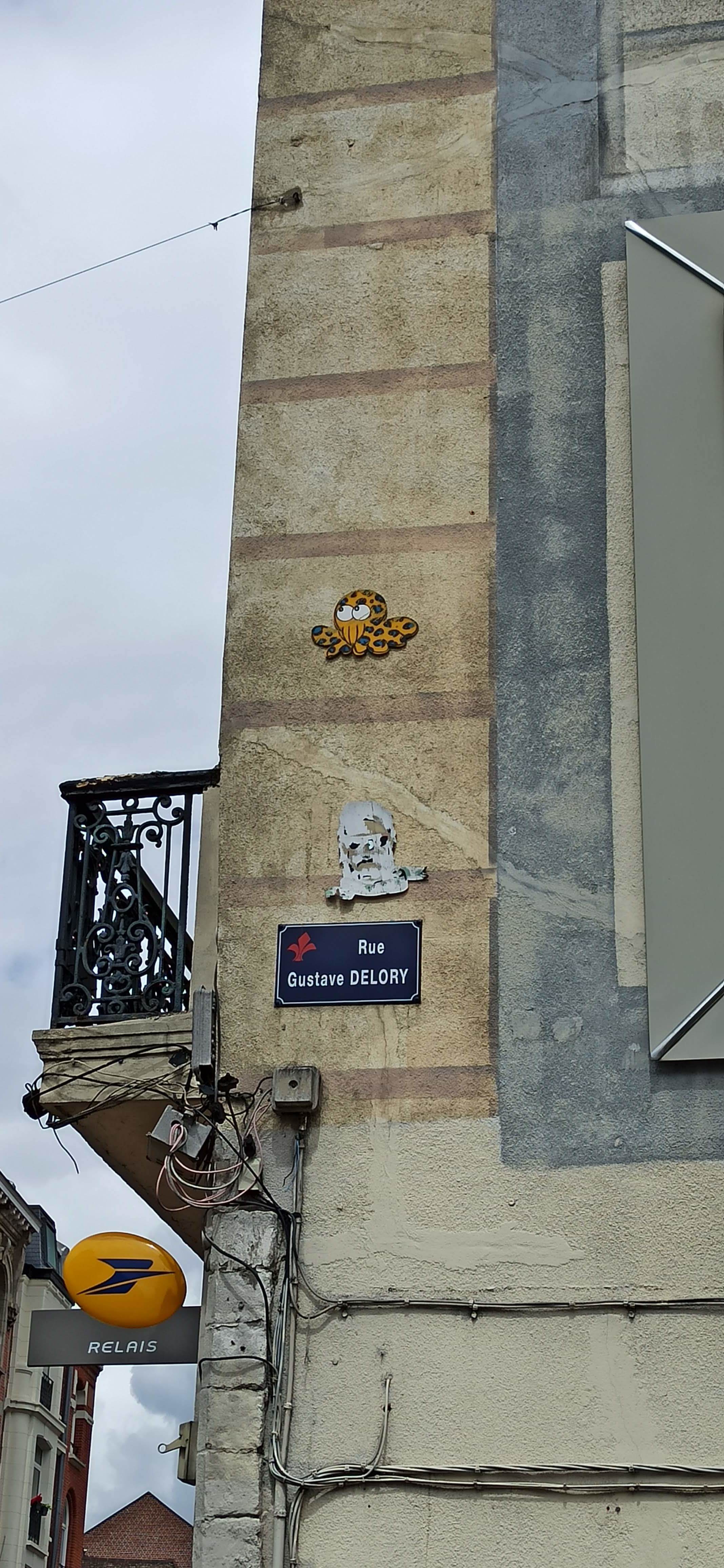 The artwork is of graffiti type. You can admire it in the city of Lille in France and more precisely here : 137 Rue Pierre Mauroy, 59800 Lille, France.