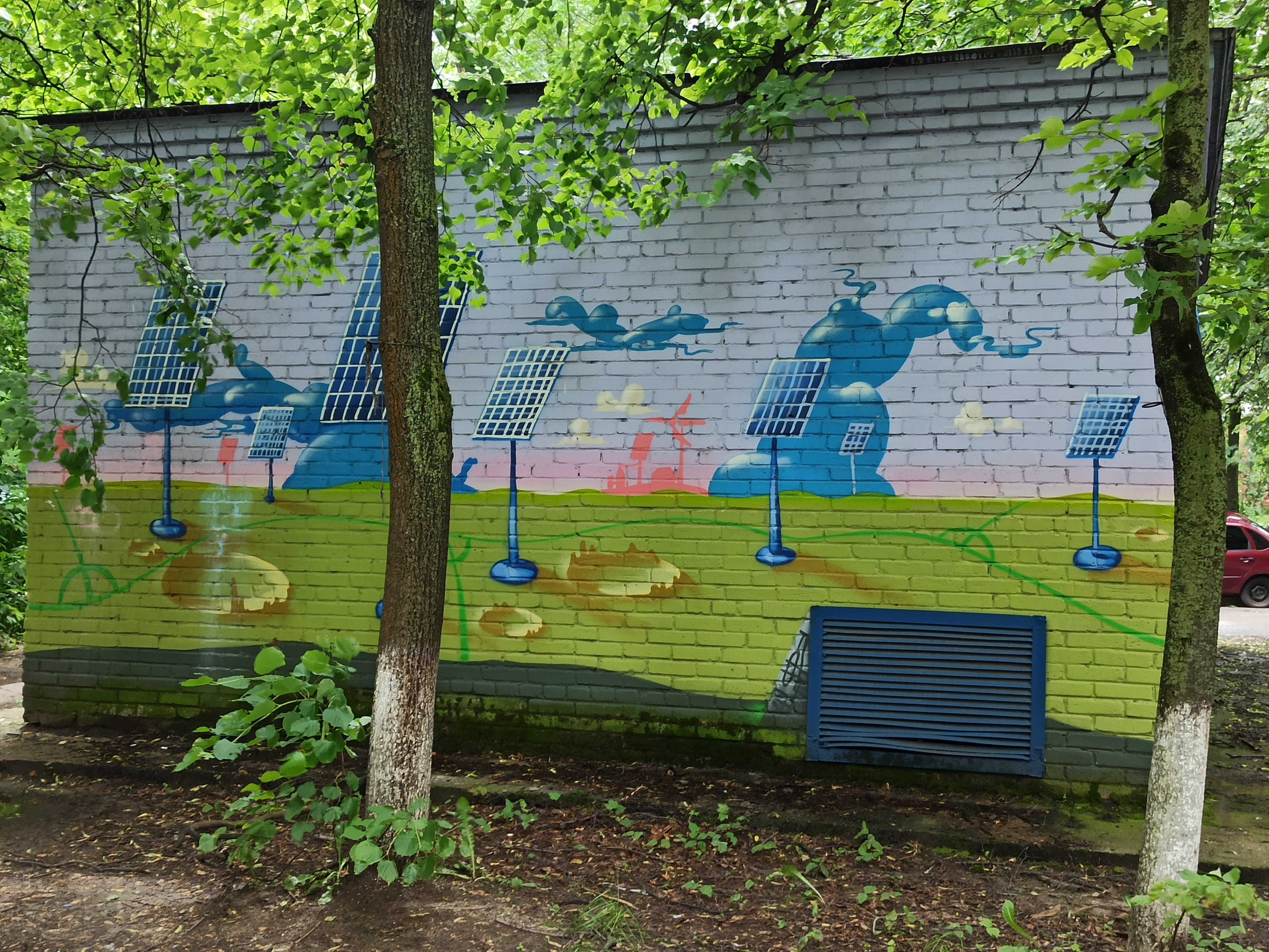 The artwork is of graffiti type. You can admire it in the city of Korolyov in Russia and more precisely here : Tsiolkovskogo drive 5А, 141078 Korolyov, Moscow region, Russia.