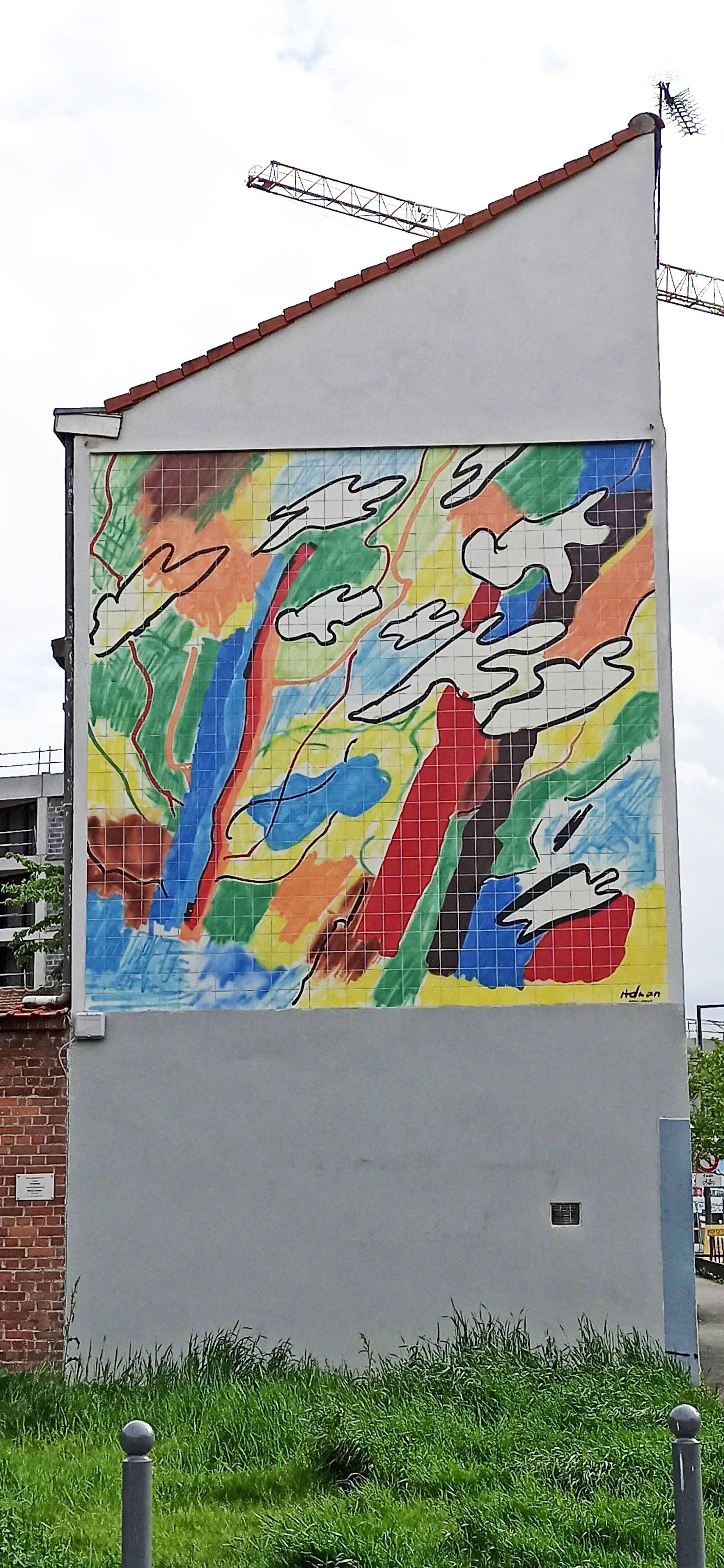 The artwork Oiseaux Migrateurs is of mosaic type. You can admire it in the city of Lille in France and more precisely here : André Ballet Garden, Rue André Ballet, 59800 Lille, France.