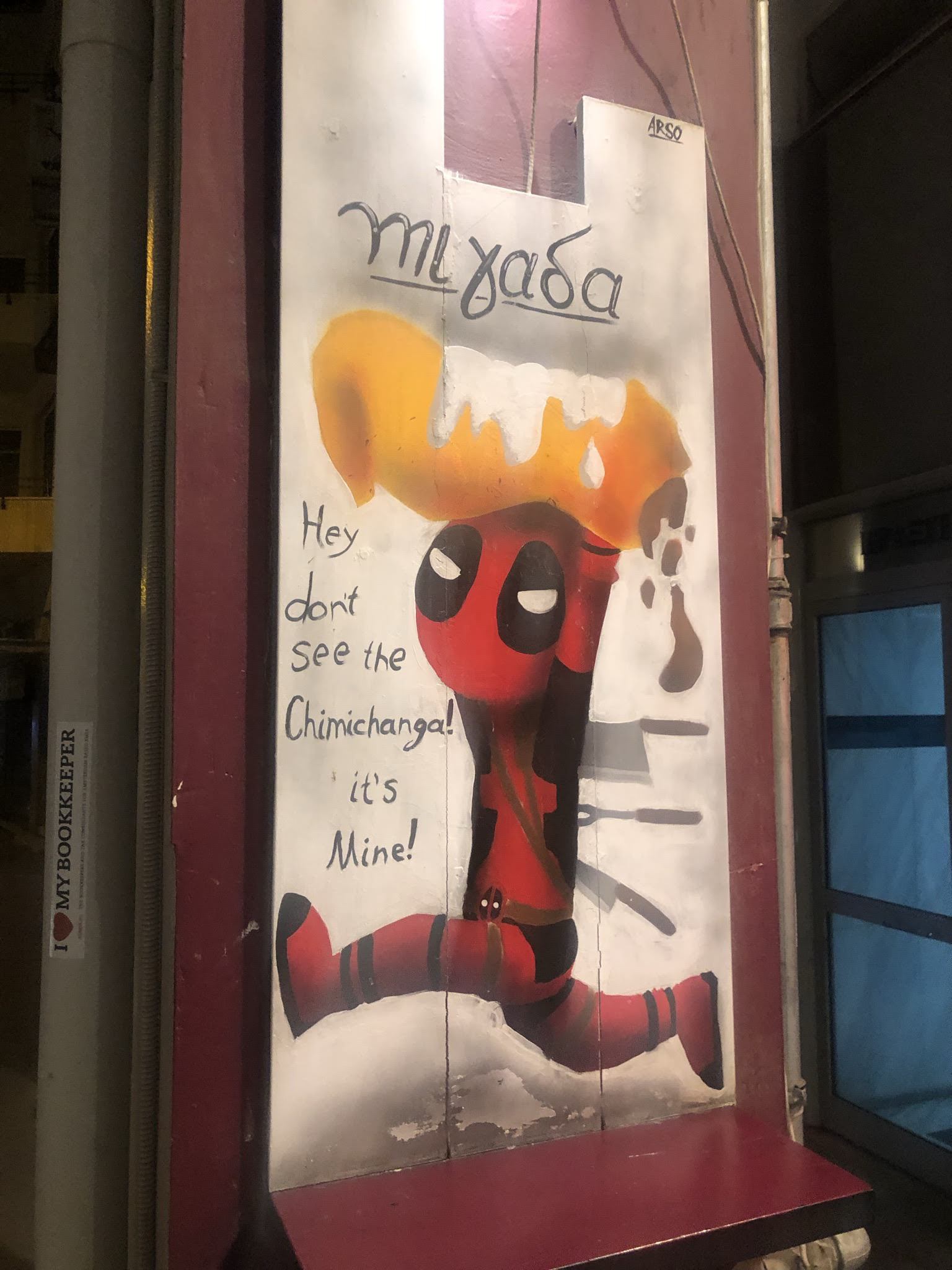 The artwork Deadpool is of graffiti type. You can admire it in the city of Athina in Greece and more precisely here : Chavriou 9, Athina 105 62, Greece.