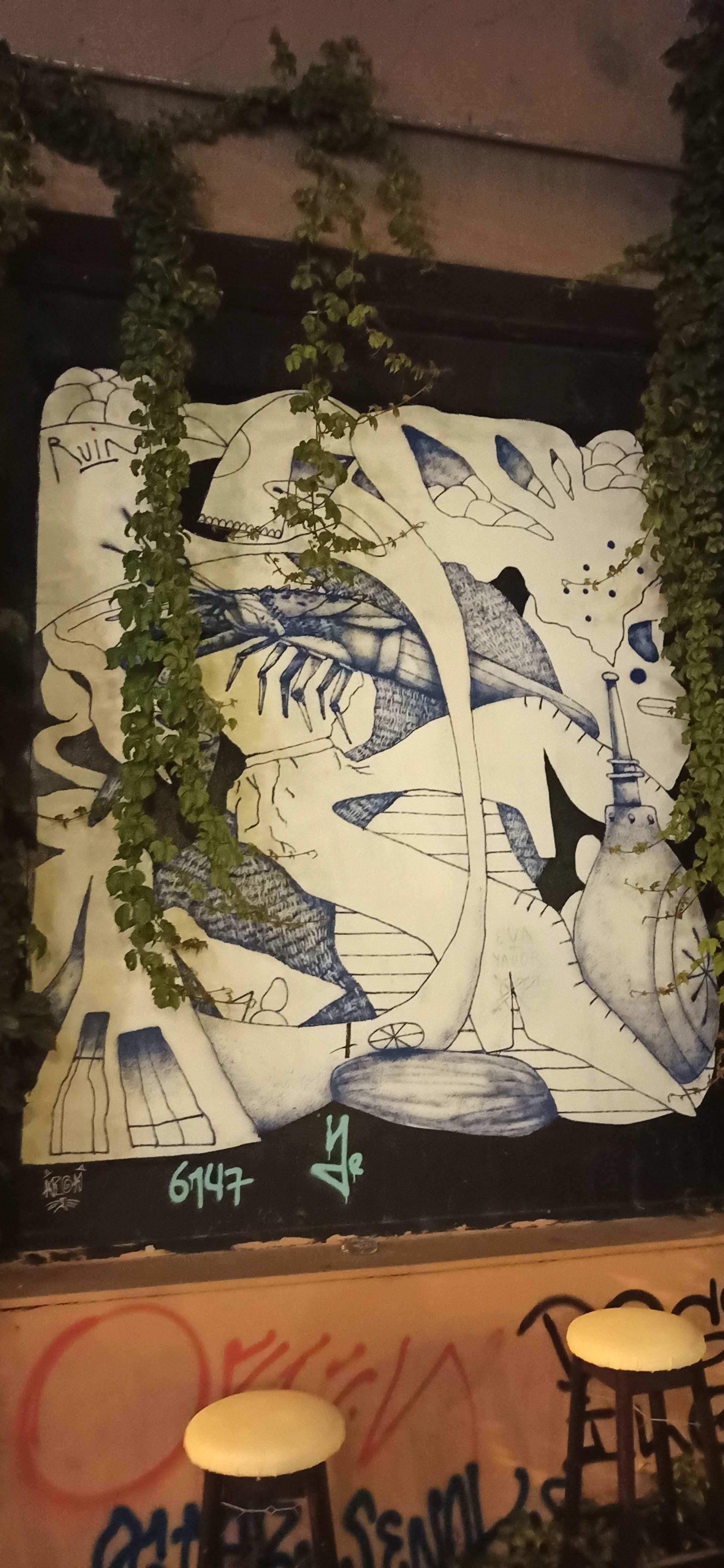 The artwork is of graffiti type. You can admire it in the city of Athina in Greece and more precisely here : Aristofanous 24, Athina 105 54, Greece.