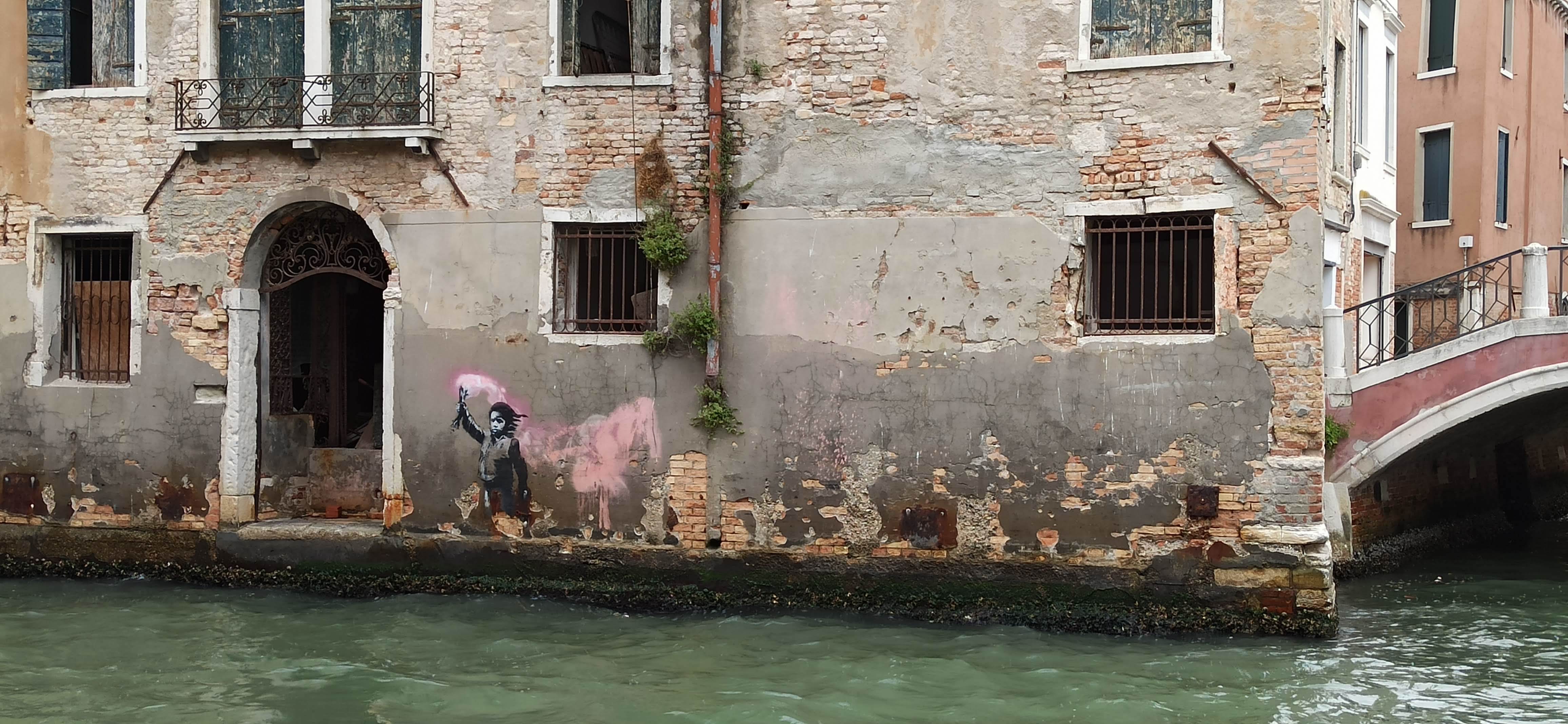 Graffiti 5338 Migrant child of Banksy in Venezia Italy
