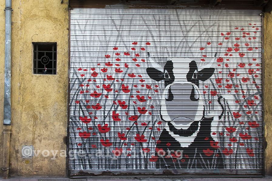 The artwork Annonciades is of graffiti type. You can admire it in the city of Annecy in France and more precisely here : Faubourg des Annonciades, 74000 Annecy, France.