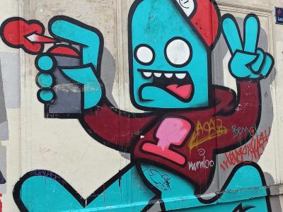 The artwork is of type graffiti. You can admire it in the city of Lille in France, more precisely here: 23 Rue Littré, 59000 Lille, France.