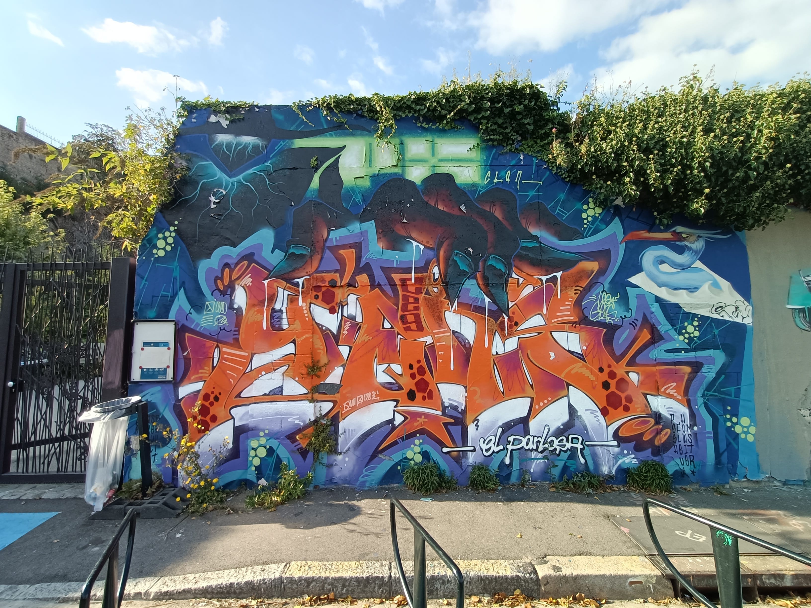The artwork is of graffiti type. You can admire it in the city of Nantes in France and more precisely here : 1 Rue de la Cale Crucy, 44100 Nantes, France.