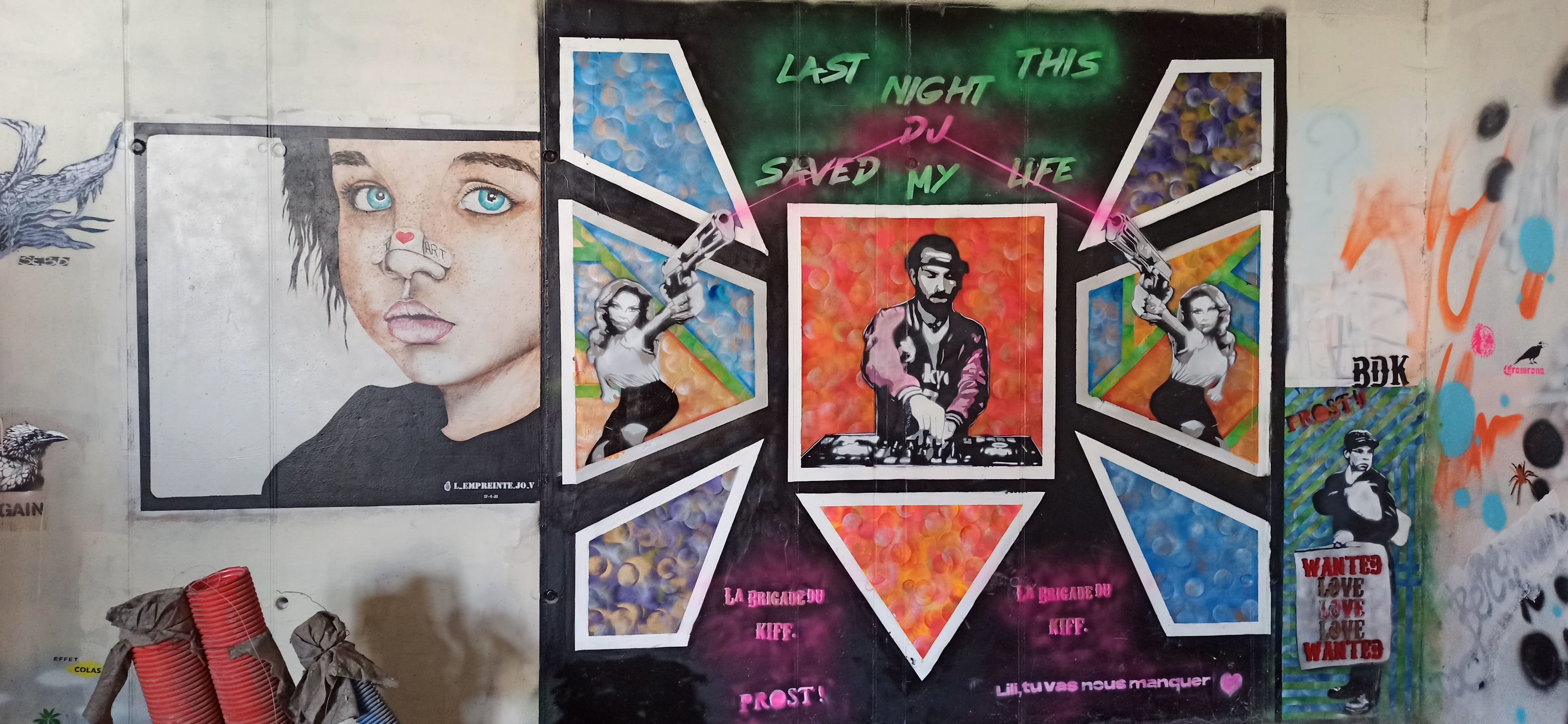 The artwork is of graffiti type. You can admire it in the city of Paris in France and more precisely here : 24 Rue Bruneseau, 75013 Paris, France.