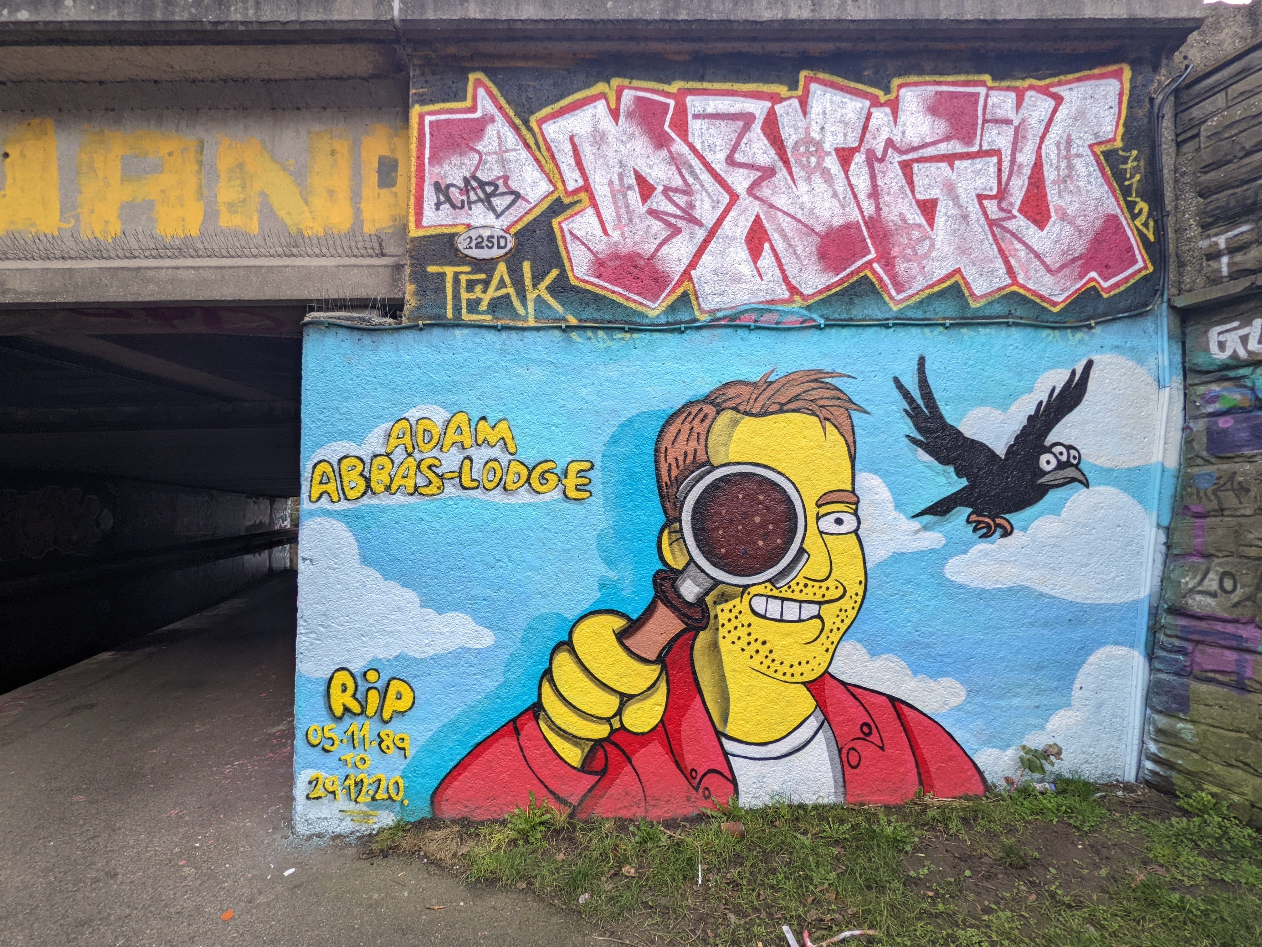 The artwork Bridge. Leeds and Liverpool Canal is of graffiti type. You can admire it in the city of Leeds in United Kingdom and more precisely here : Canalside Buildings Graingers Way, 1A Wellington Rd, Leeds LS12 1DR, UK.