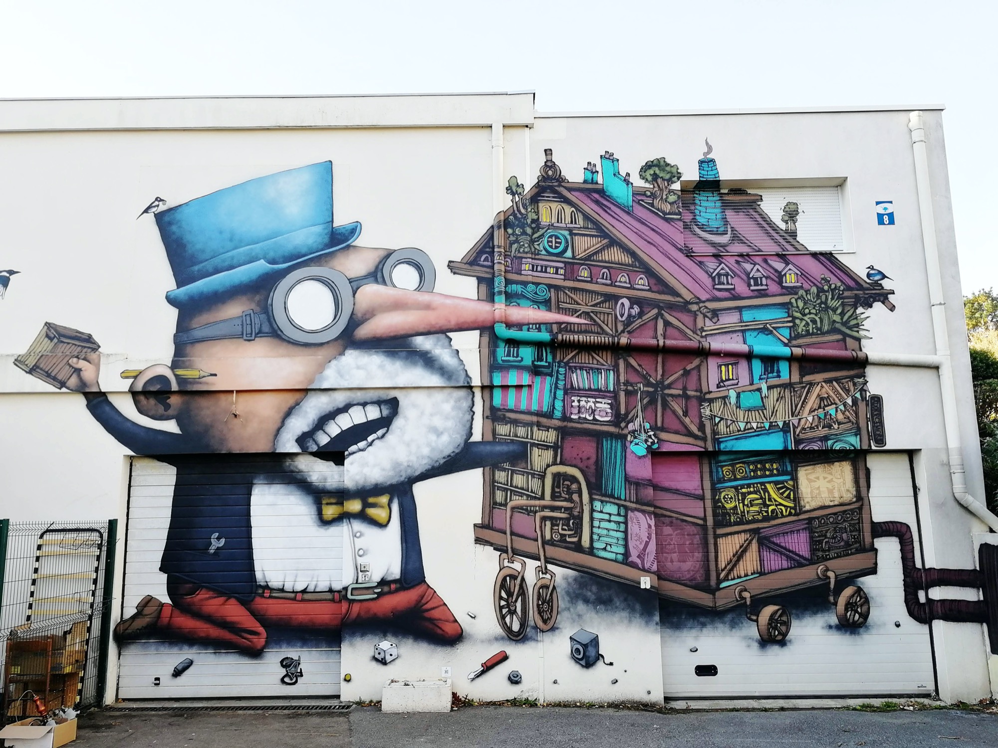 The artwork Le chercheur is of graffiti type. You can admire it in the city of Orvault in France and more precisely here : 3 Allée de la Mayenne, 44700 Orvault, France.