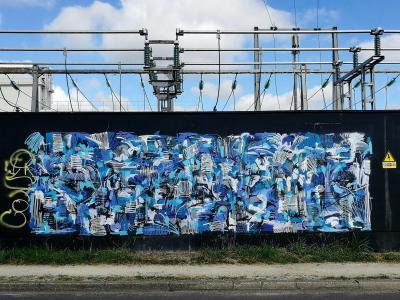 The artwork is of type graffiti. You can admire it in the city of Pessac in France, more precisely here: 85 Av. des Arts, 33600 Pessac, France.