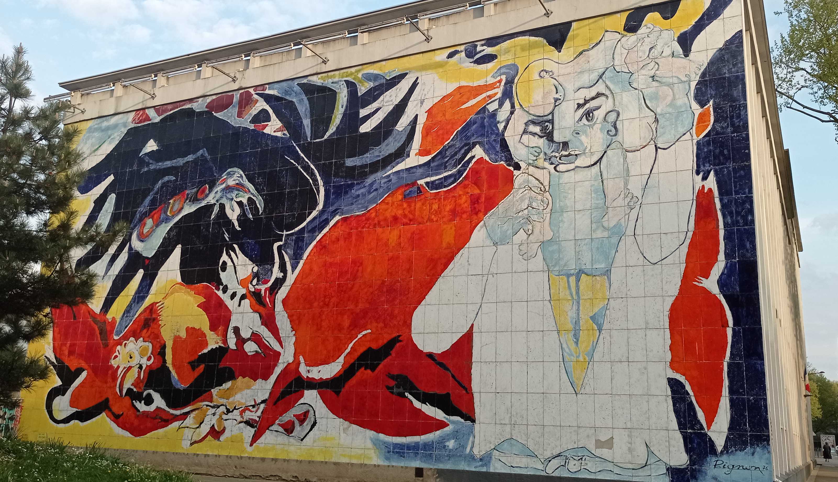 The artwork is of graffiti type. You can admire it in the city of Lille in France and more precisely here : Mairie de Lille, 59800 Lille, France.