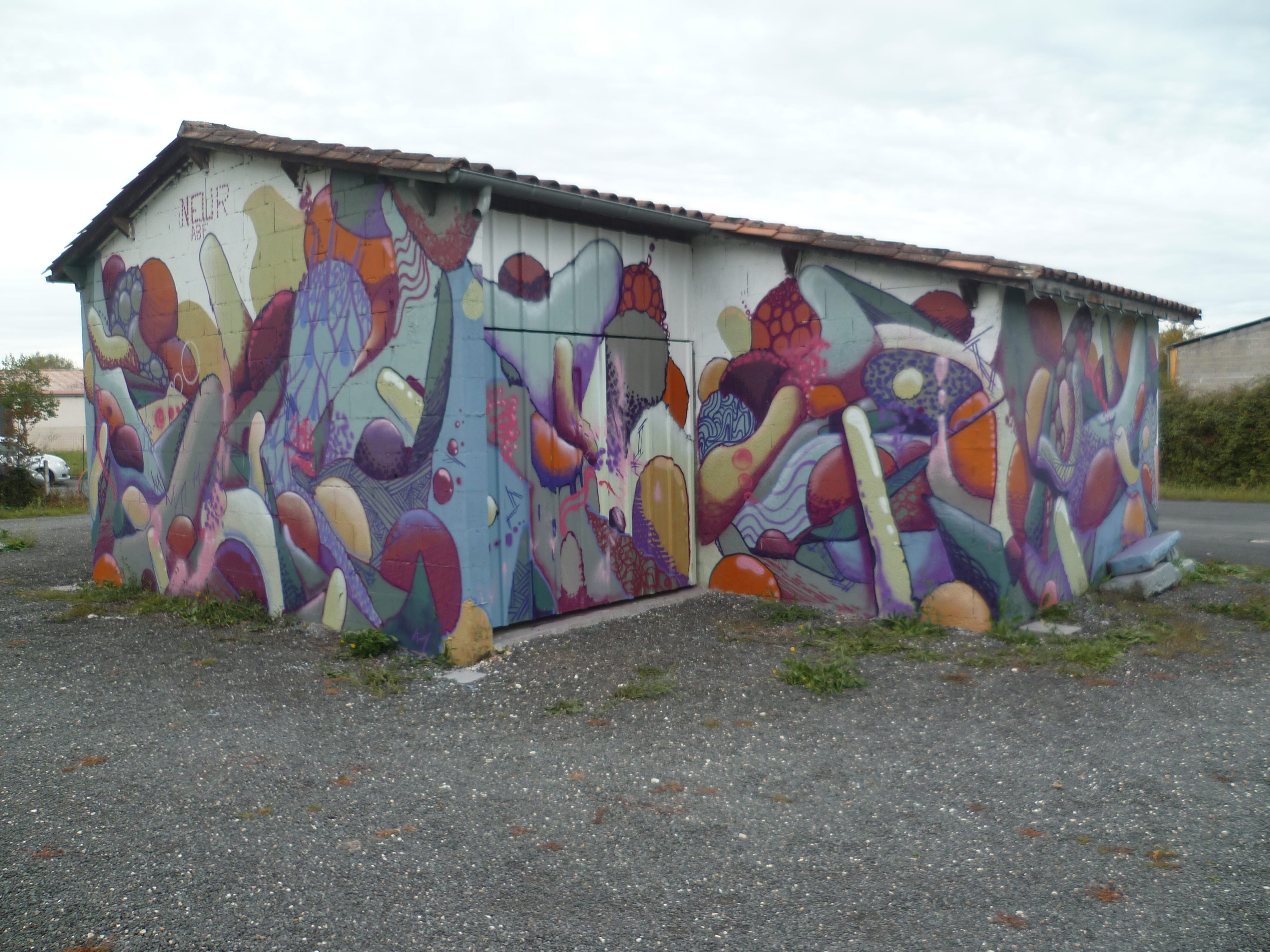 The artwork #neurabf is of graffiti type. You can admire it in the city of Marsac-sur-l'Isle in France and more precisely here : 102 Rte de Bordeaux, 24430 Marsac-sur-l'Isle, France.