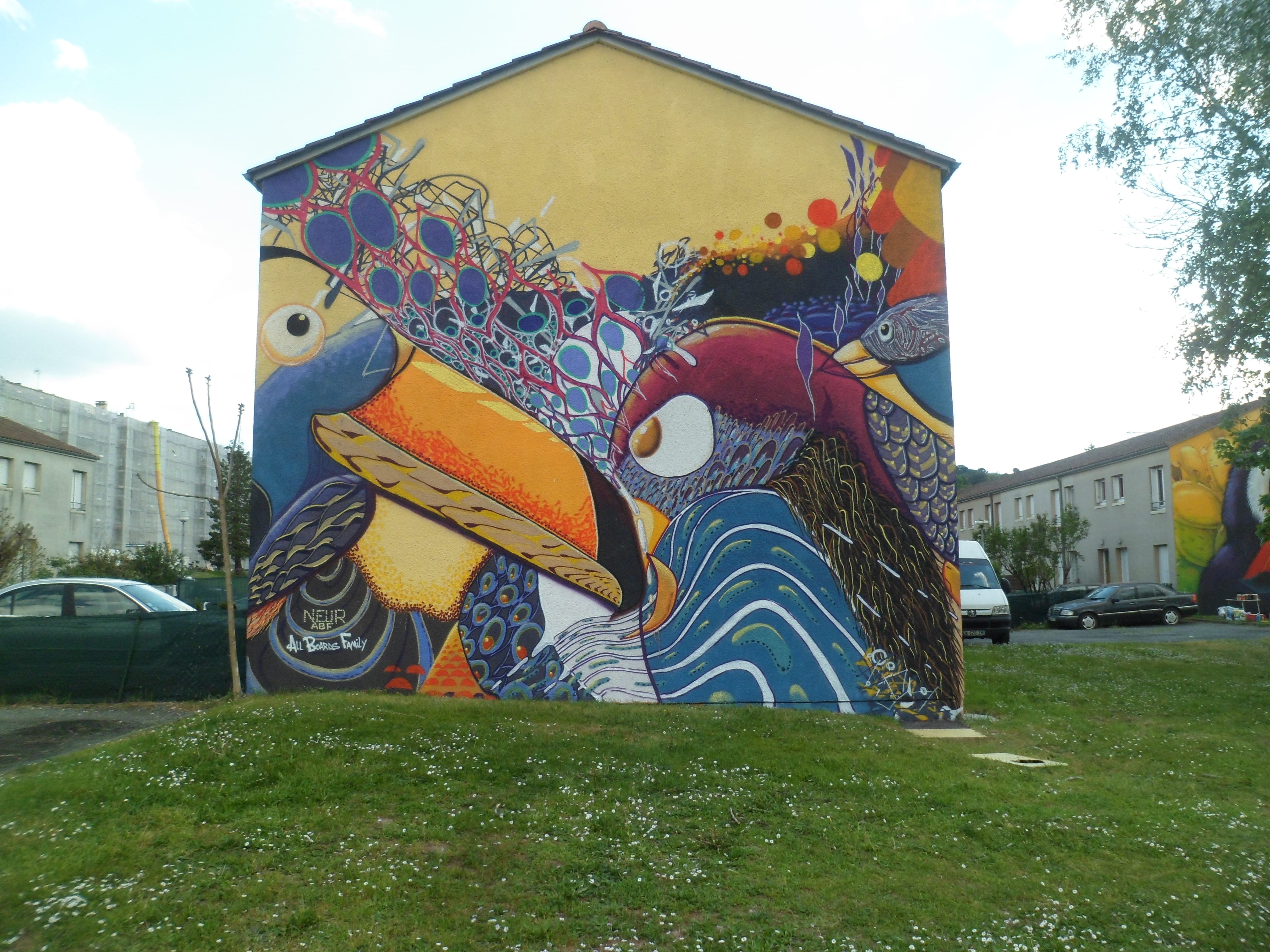 The artwork #neurabf is of graffiti type. You can admire it in the city of Coulounieix-Chamiers in France and more precisely here : 10 Rue René Cassin, 24660 Coulounieix-Chamiers, France.