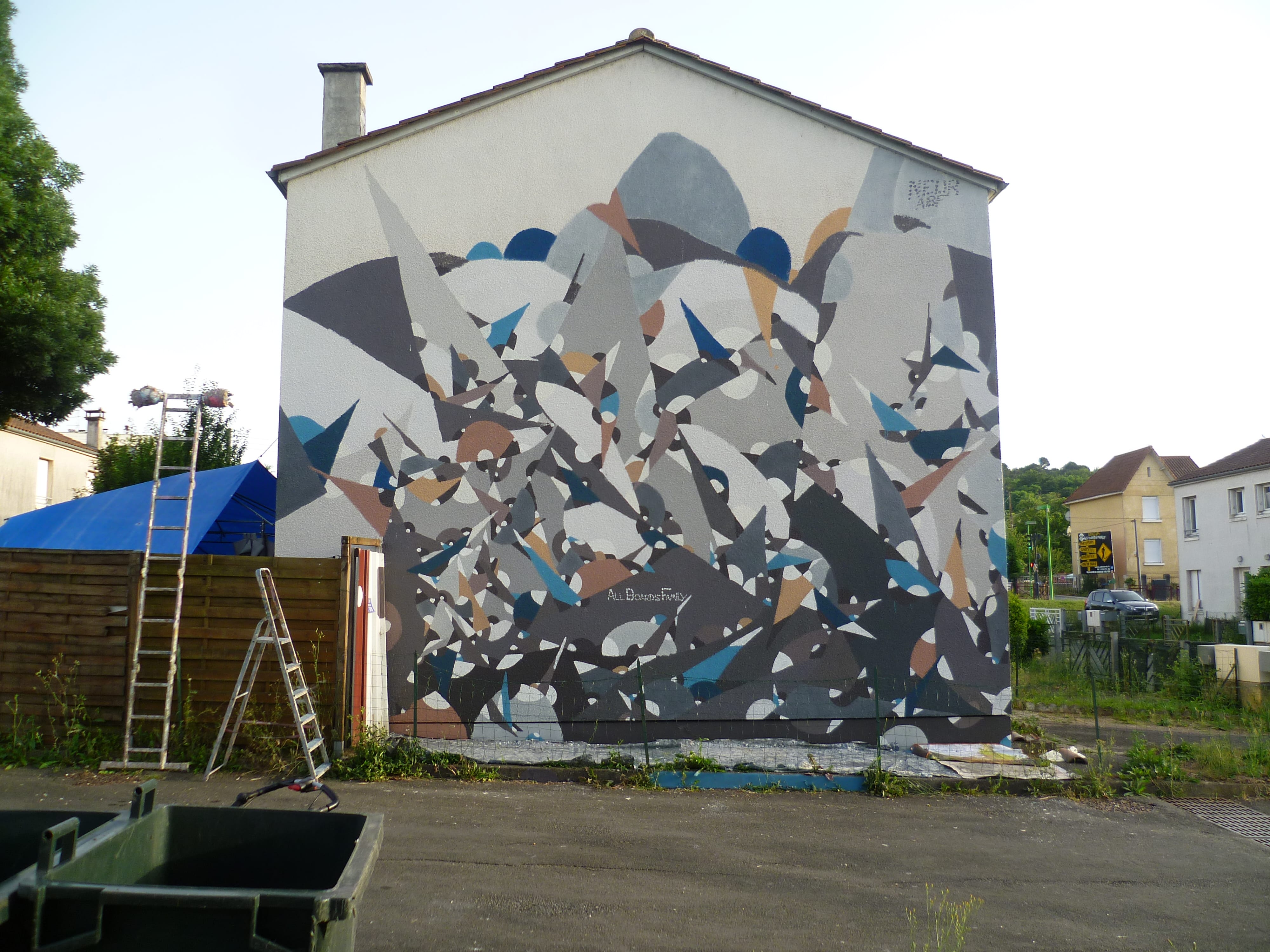 The artwork neur abf is of graffiti type. You can admire it in the city of Coulounieix-Chamiers in France and more precisely here : 49 Rue Nelson Mandela, 24660 Coulounieix-Chamiers, France.