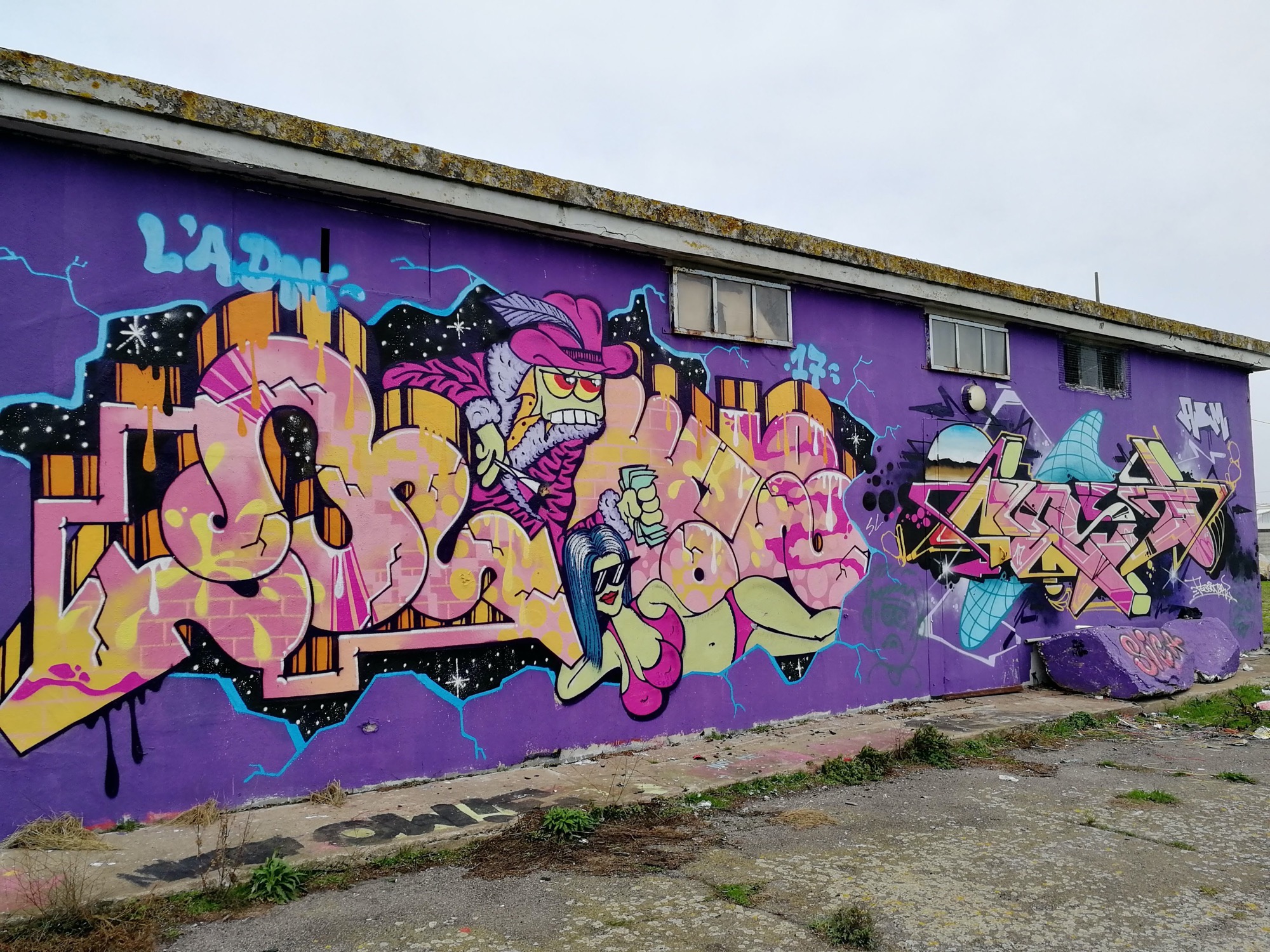 The artwork is of graffiti type. You can admire it in the city of Nantes in France and more precisely here : 36 Quai Président Wilson, 44200 Nantes, France.