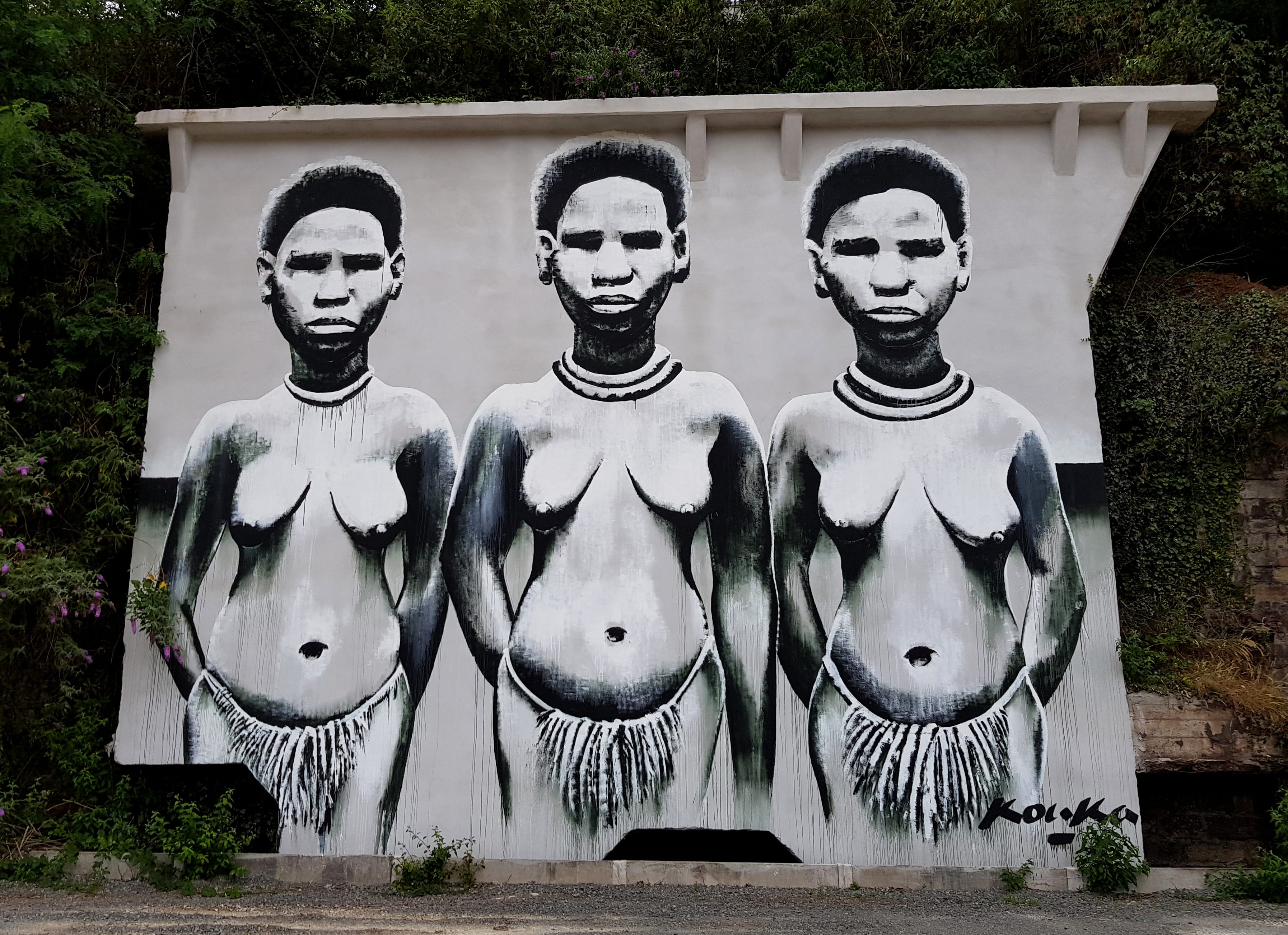 The artwork KOUKA is of graffiti type. You can admire it in the city of Decazeville in France and more precisely here : 28 Site Indus.du Centre Ville, 12300 Decazeville, France.
