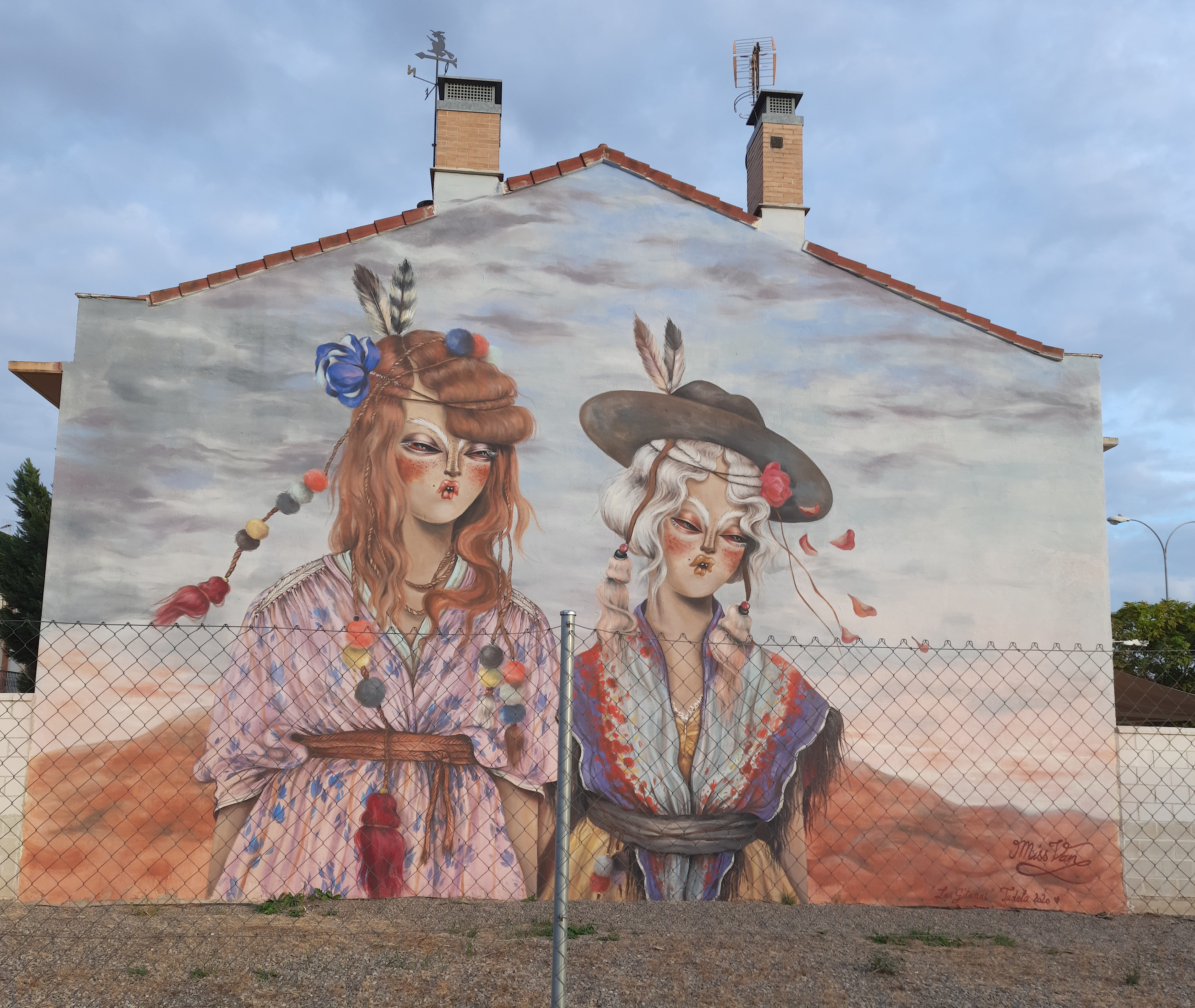 The artwork is of graffiti type. You can admire it in the city of Tudela in Spain and more precisely here : C. Magdalena Eguaras, 52, 31500 Tudela, Navarra, Spain.