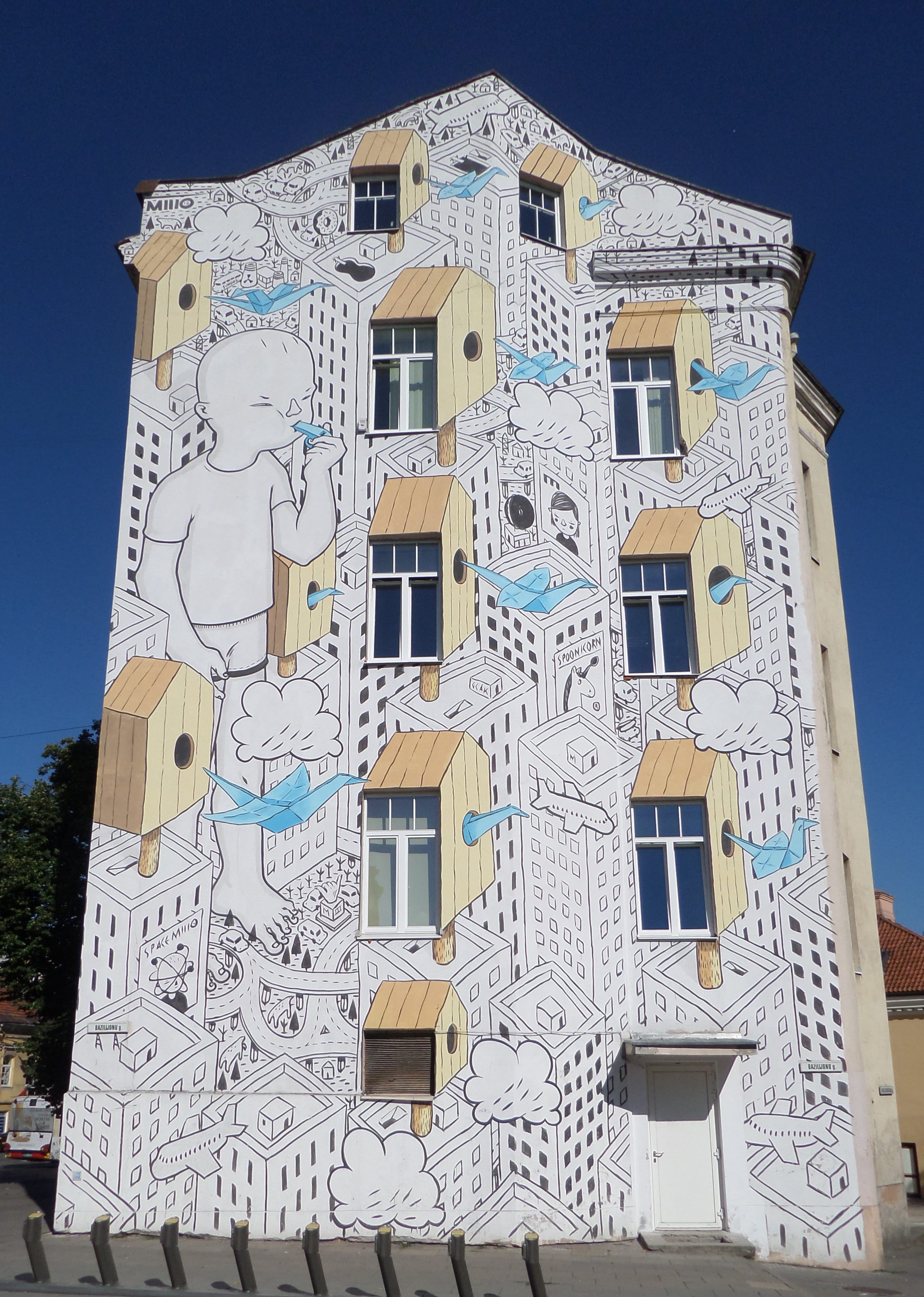 The artwork is of graffiti type. You can admire it in the city of Vilnius in Lithuania and more precisely here : ArkliĊ³ g. 24 01306 Vilnius, Lituanie.
