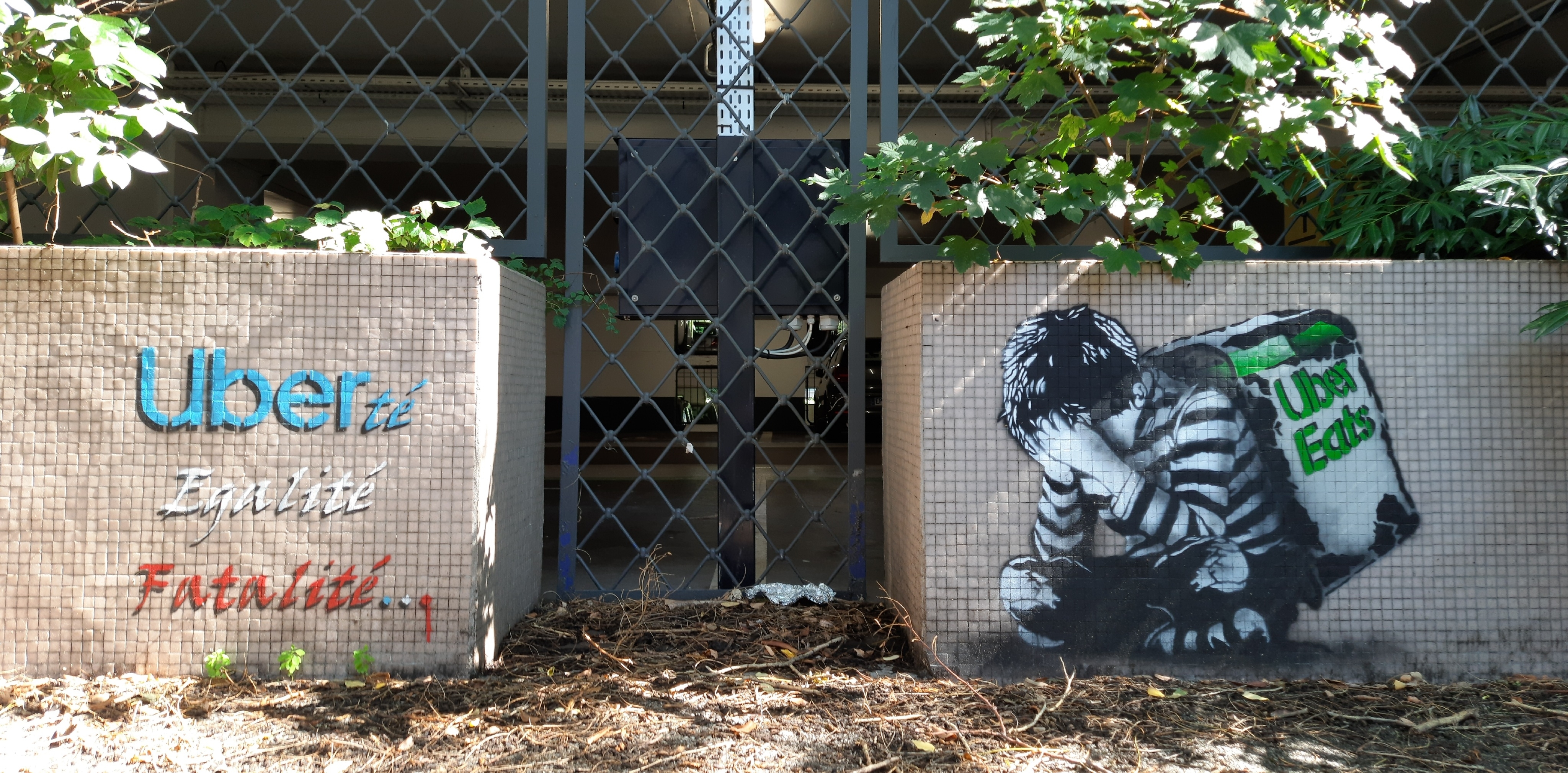 The artwork is of graffiti type. You can admire it in the city of grenoble in France and more precisely here : Indigo Parking Hoche, Rue François Raoult, Grenoble.