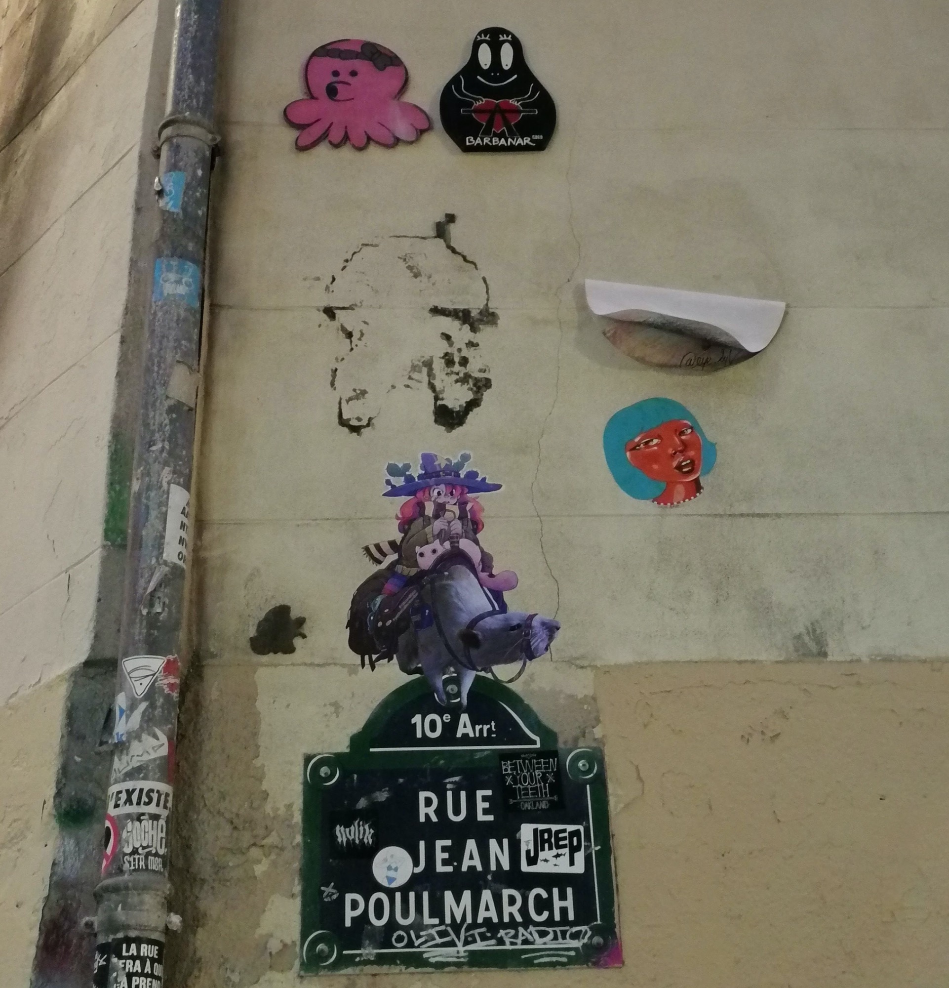 The artwork is of sticking type. You can admire it in the city of Paris in France and more precisely here : 87 Quai de Valmy, 75010 Paris, France.