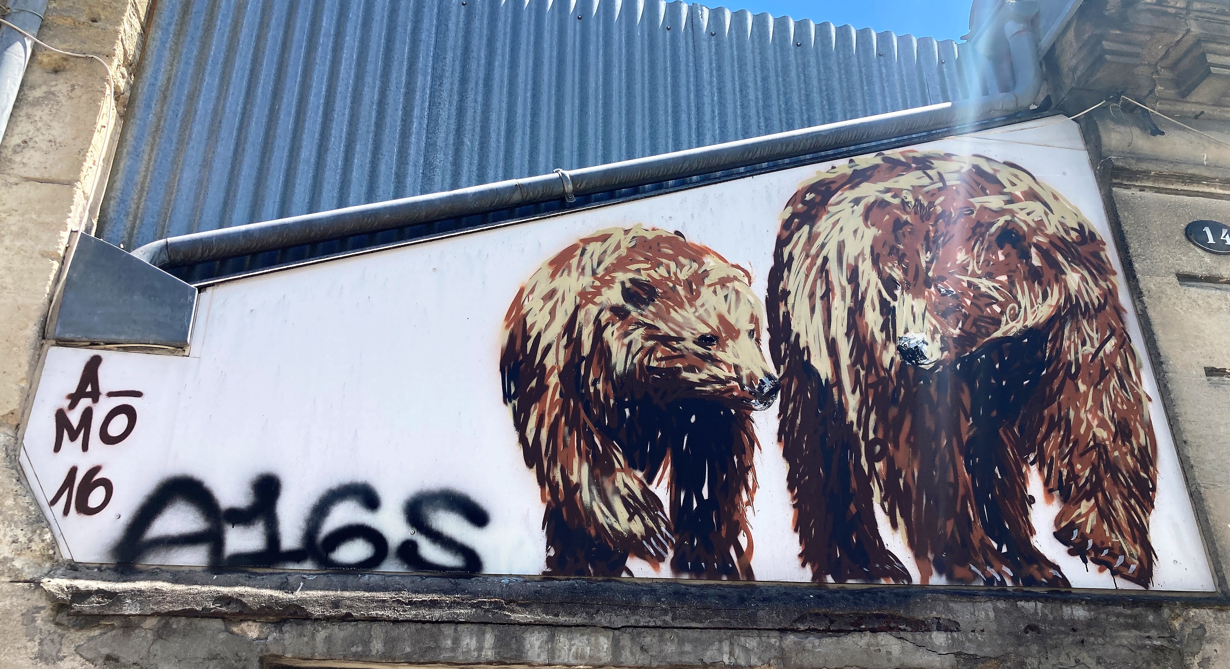 The artwork is of graffiti type. You can admire it in the city of Bordeaux in France and more precisely here : 1 Rue Jacques Ellul, 33800 Bordeaux, France.