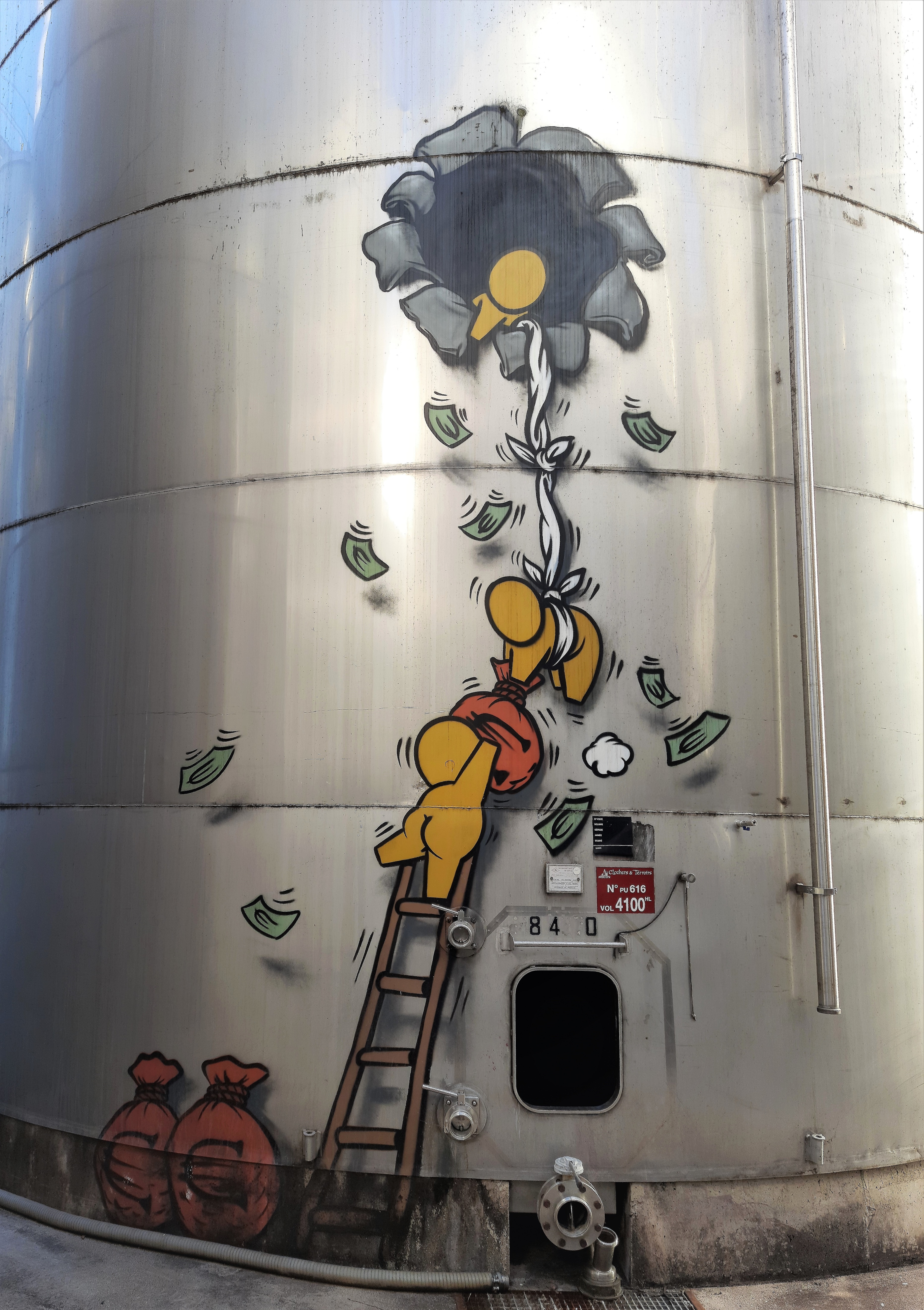 The artwork is of graffiti type. You can admire it in the city of Puilacher in France and more precisely here : 1 Rte Plaissan, 34230 Puilacher, France.