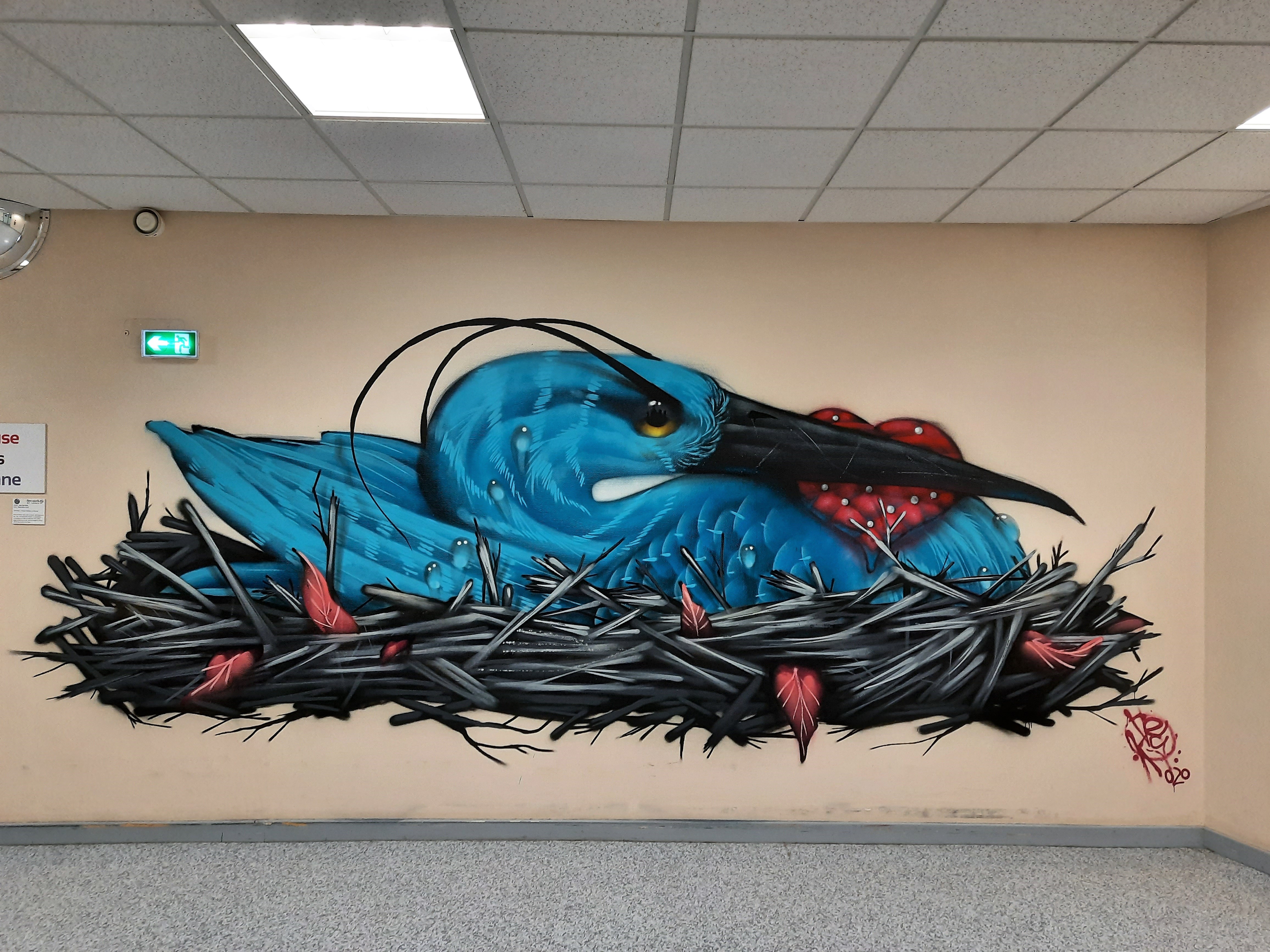 The artwork is of graffiti type. You can admire it in the city of La Tronche in France and more precisely here : CHU de Grenoble, Bd de la Chantourne, 38700 La Tronche, France.