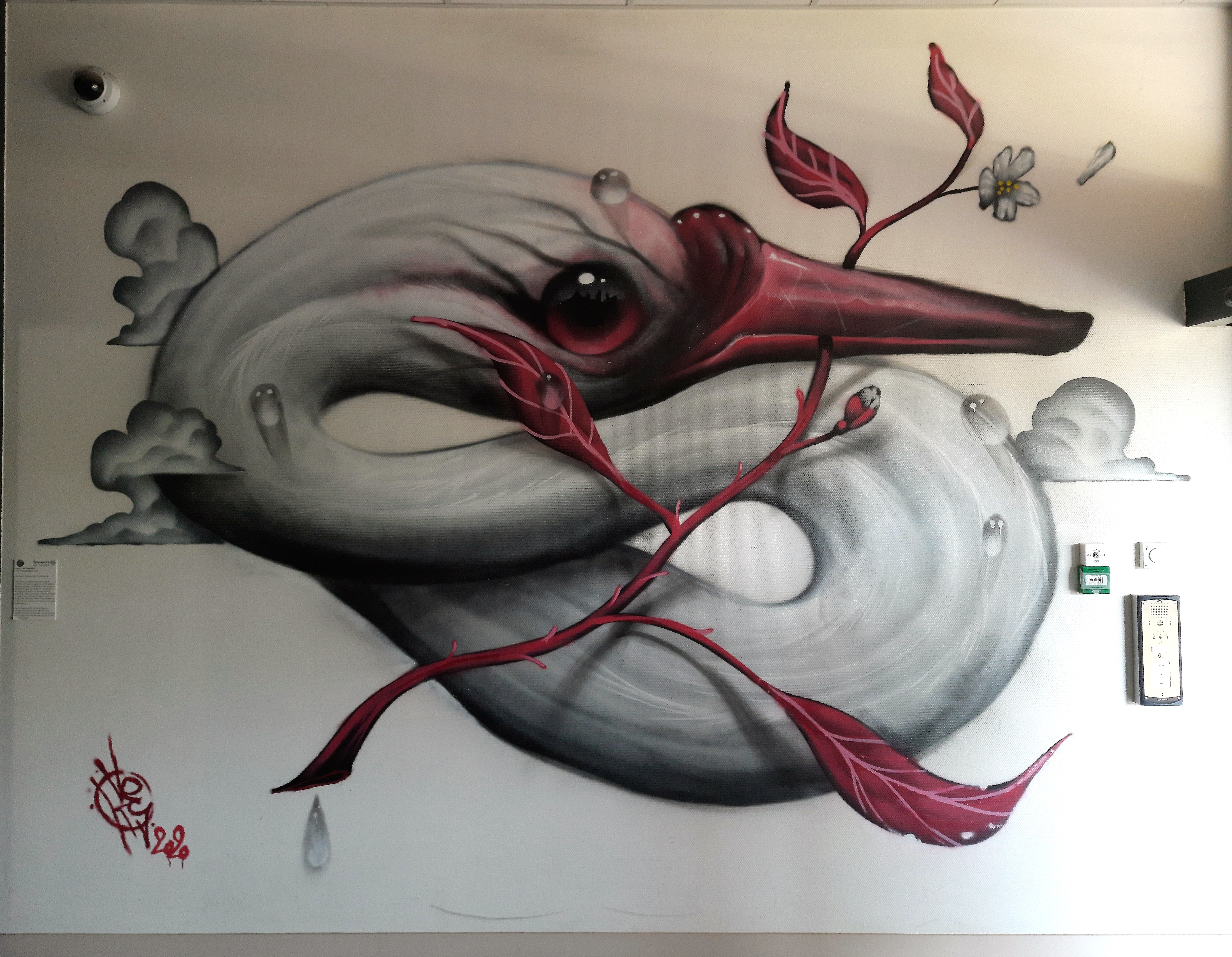 The artwork is of graffiti type. You can admire it in the city of La Tronche in France and more precisely here : CHU de Grenoble, Bd de la Chantourne, 38700 La Tronche, France.