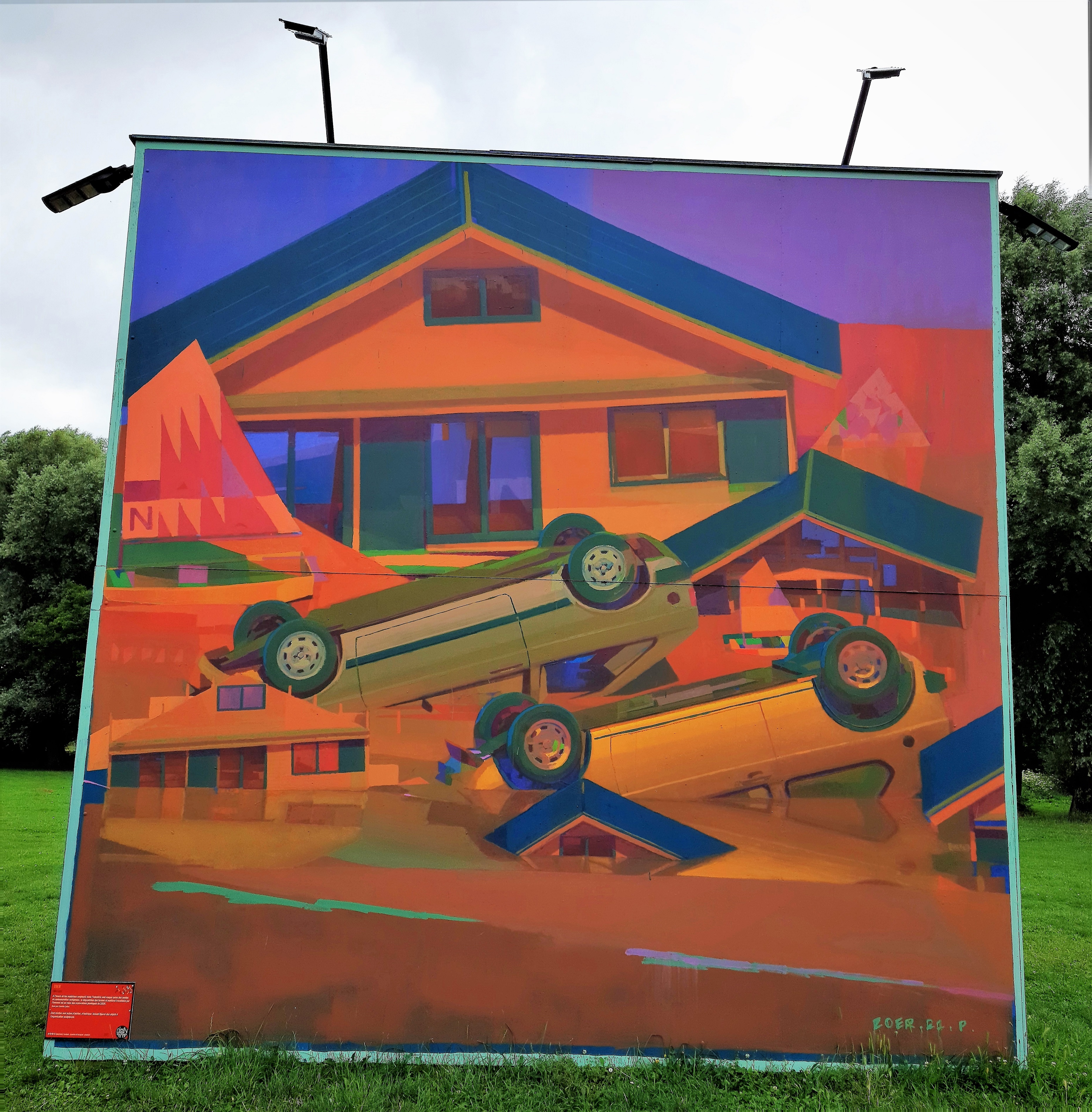 The artwork is of graffiti type. You can admire it in the city of Le Mans in France and more precisely here : 54 Rue des Batignolles, 72100 Le Mans, France.