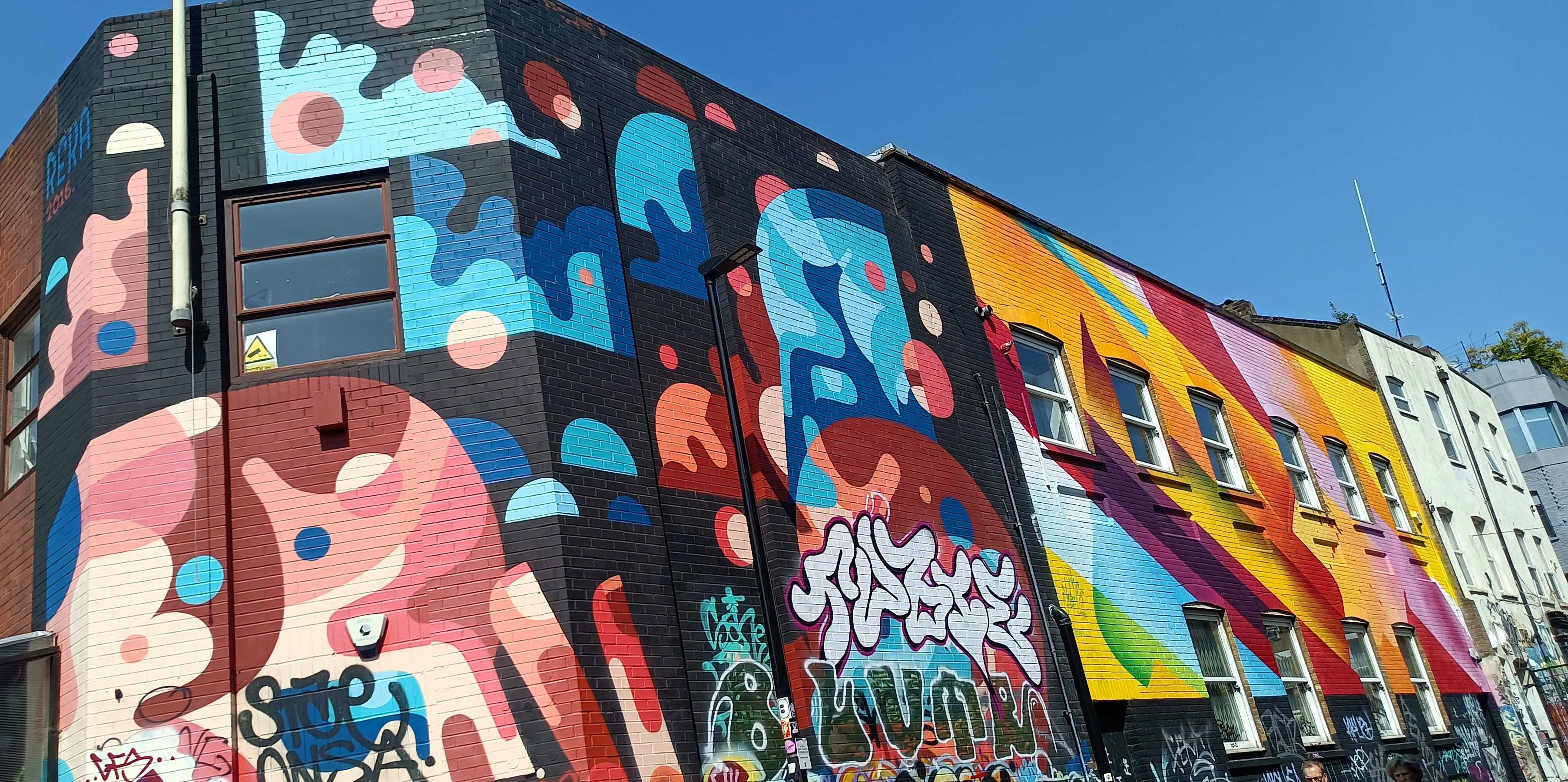 The artwork is of graffiti type. You can admire it in the city of England in United Kingdom and more precisely here : 2 Whitby St, London E1 6JU, UK.