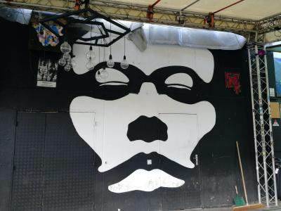 The artwork is of type graffiti. You can admire it in the city of Paris in France, more precisely here: 203 Quai de Valmy, 75010 Paris, France.