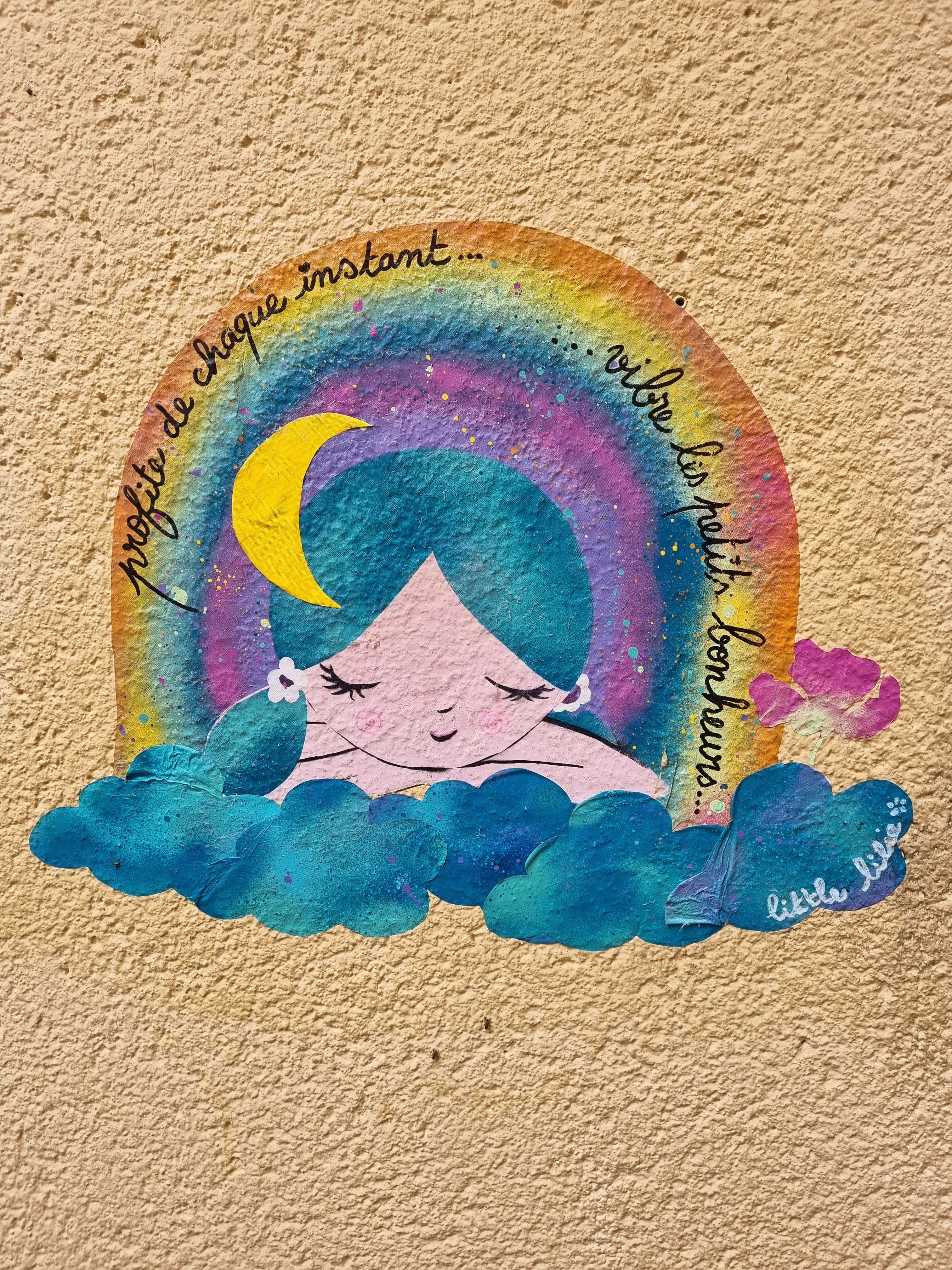 The artwork is of graffiti type. You can admire it in the city of Clermont-Ferrand in France and more precisely here : 5 Rue de la Coifferie, 63000 Clermont-Ferrand, France.