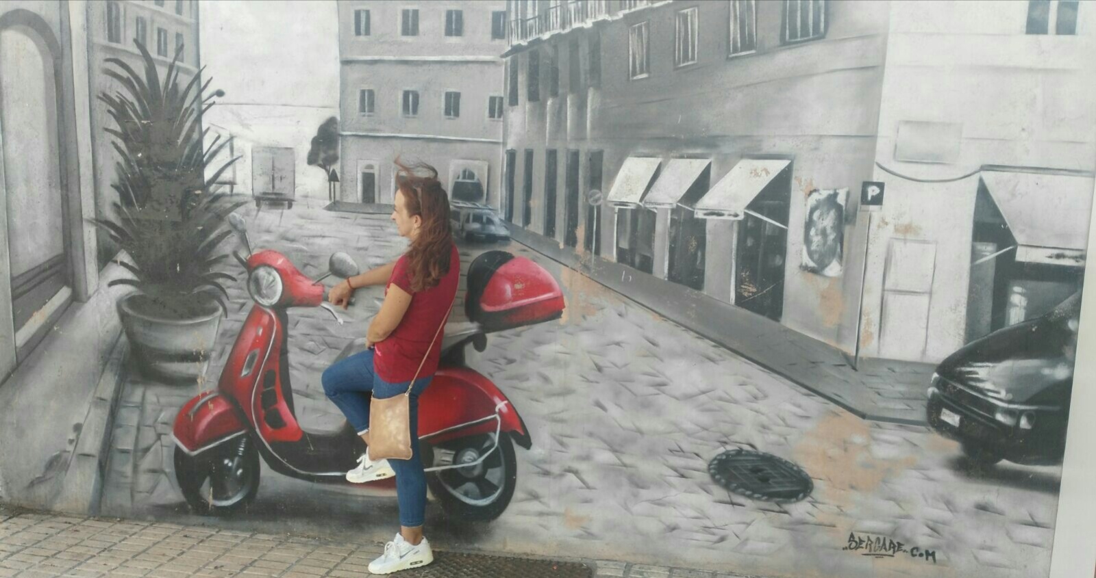 The artwork Vespa en la calle is of graffiti type. You can admire it in the city of Burgos in Spain and more precisely here : Calle Vitoria, 251, 09007 Burgos, España.
