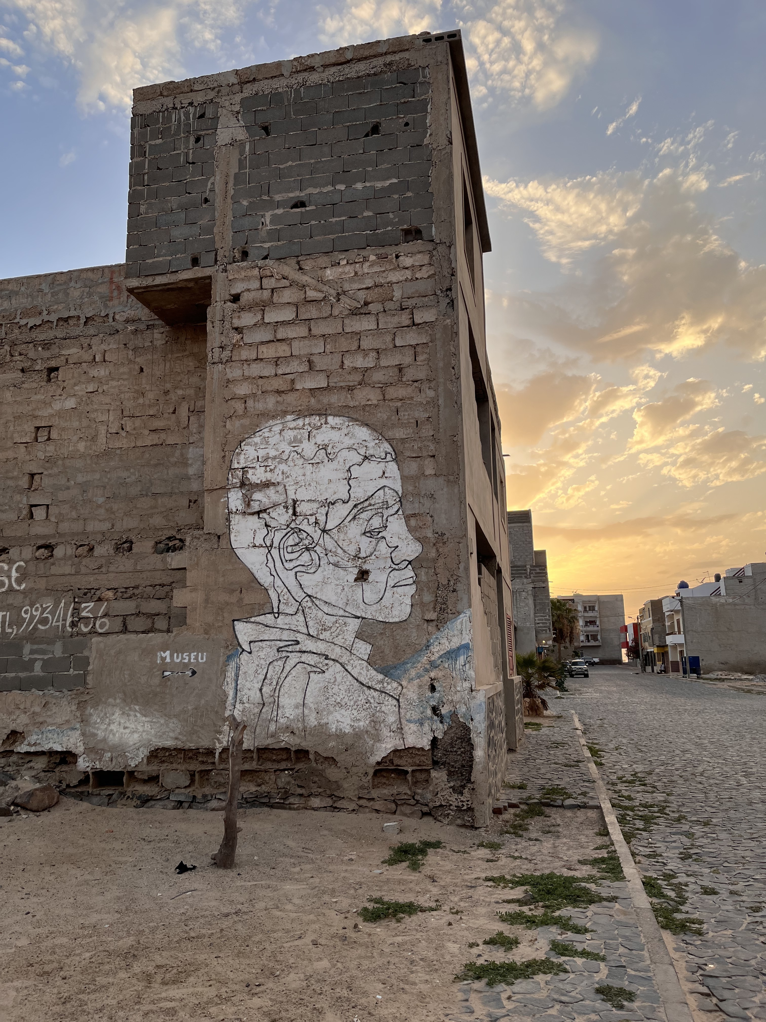 The artwork is of graffiti type. You can admire it in the city of Sal Rei in Cabo Verde and more precisely here : 53HM+58Q, Sal Rei, Cabo Verde.