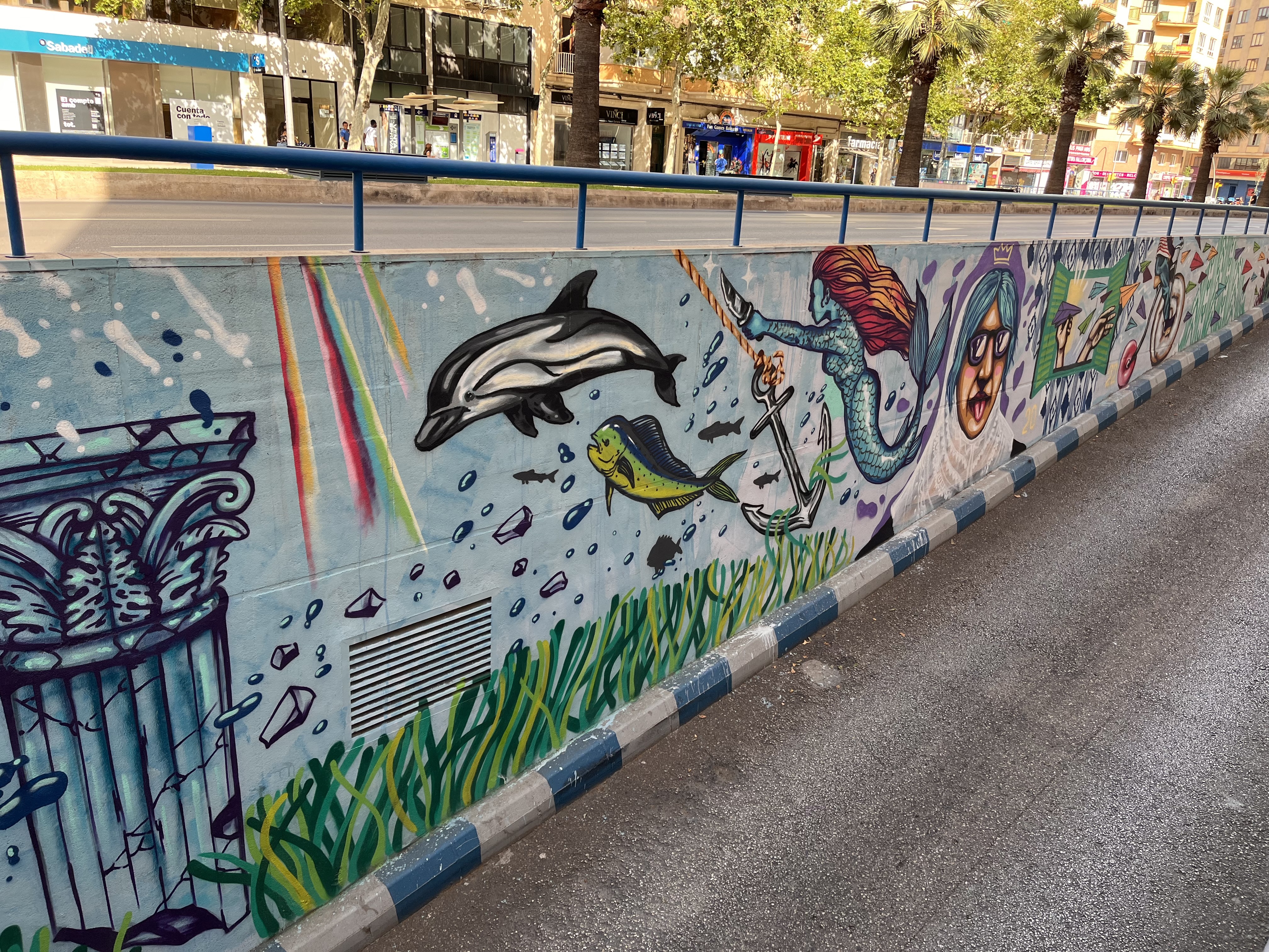 The artwork is of graffiti type. You can admire it in the city of Palma in Spain and more precisely here : Avinguda de Gabriel Alomar, 4, y Vill 4, 07006 Palma, Illes Balears, Spain.