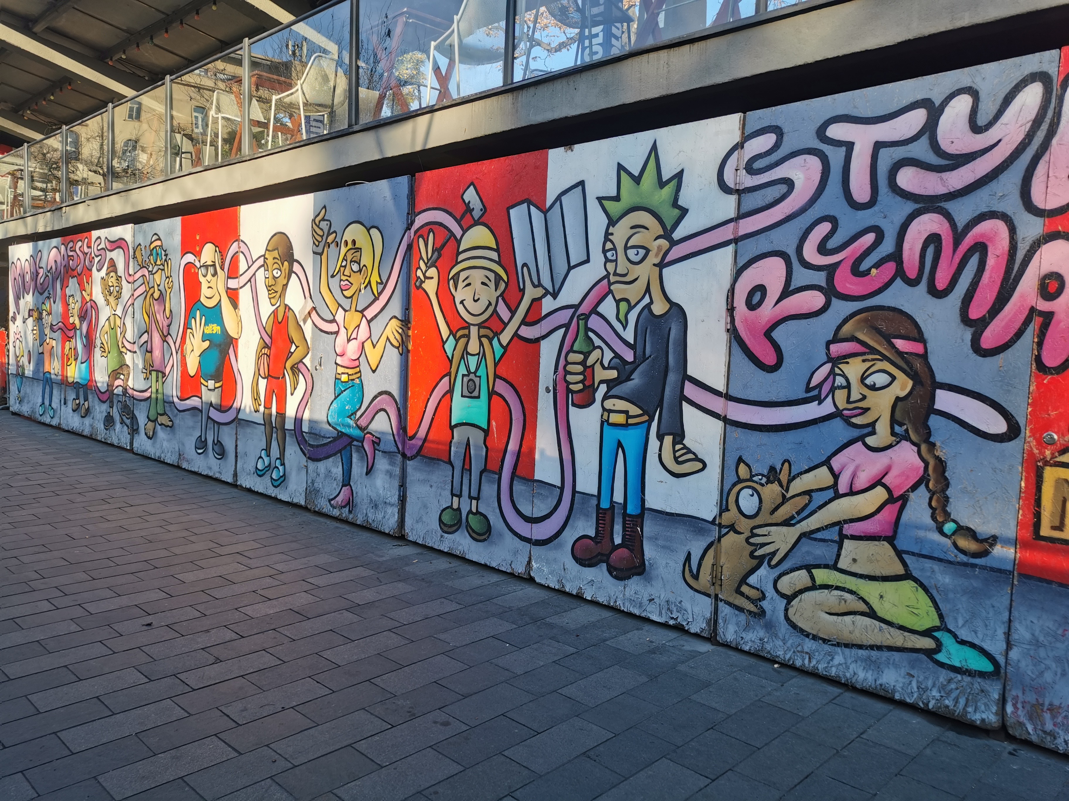 The artwork is of graffiti type. You can admire it in the city of Budapest in Hungary and more precisely here : Budapest, Erzsébet tér 11-13, 1051 Hungary.