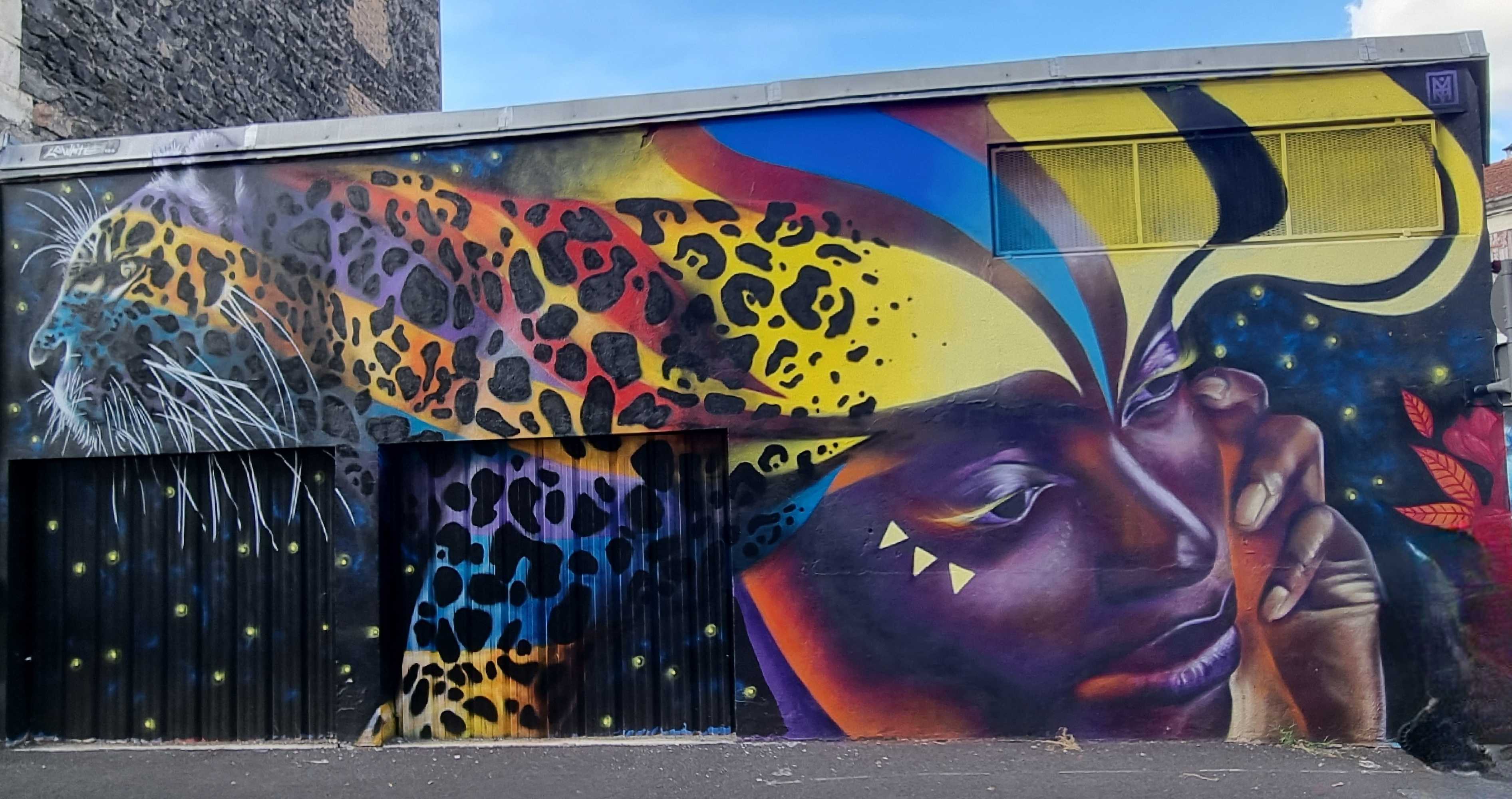 The artwork is of graffiti type. You can admire it in the city of Clermont-Ferrand in France and more precisely here : 27 Rue de Châteaudun, 63000 Clermont-Ferrand, France.