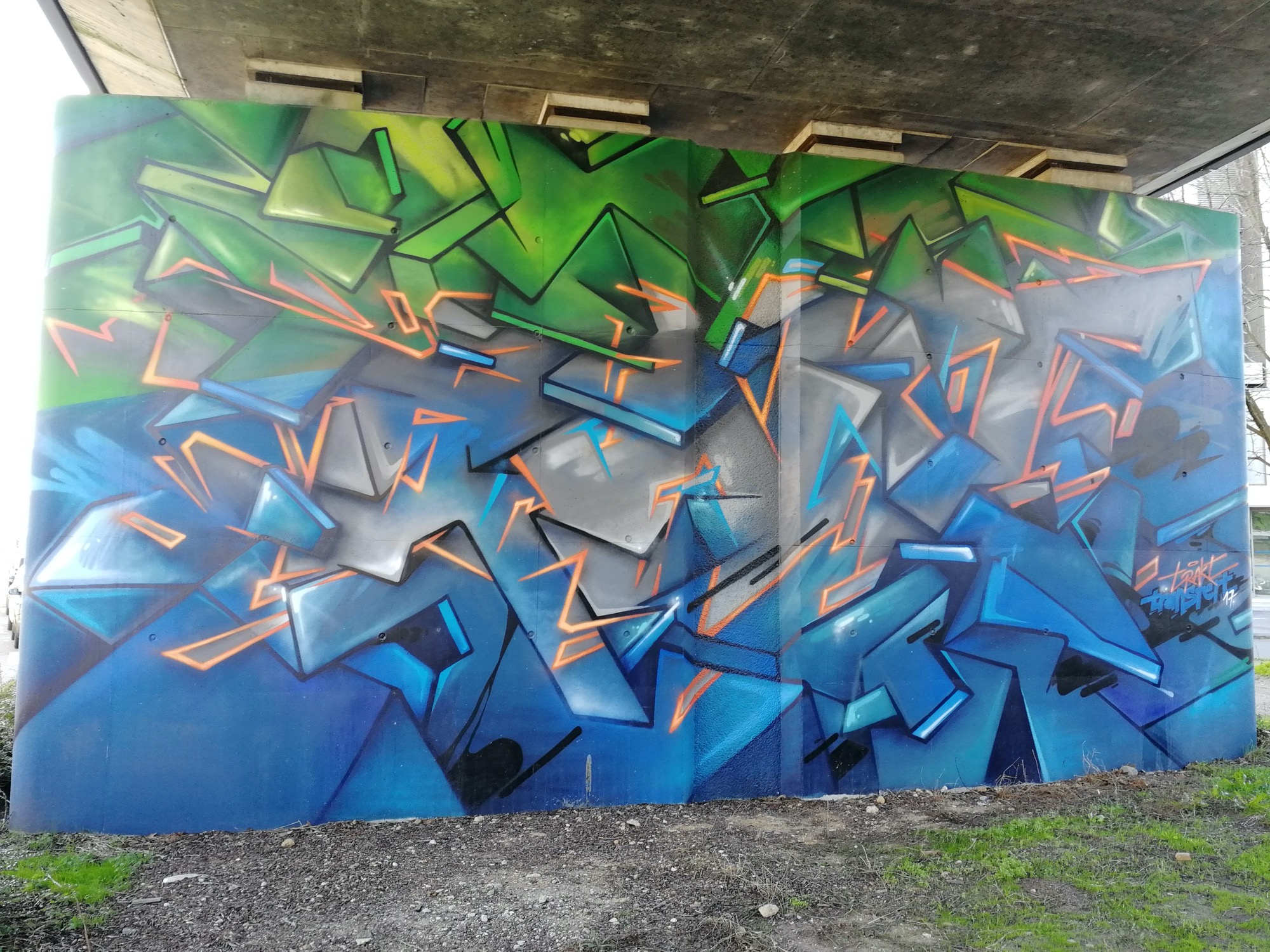 The artwork is of graffiti type. You can admire it in the city of Bordeaux in France and more precisely here : 3 Allée Eugène Delacroix, 33800 Bordeaux, France.