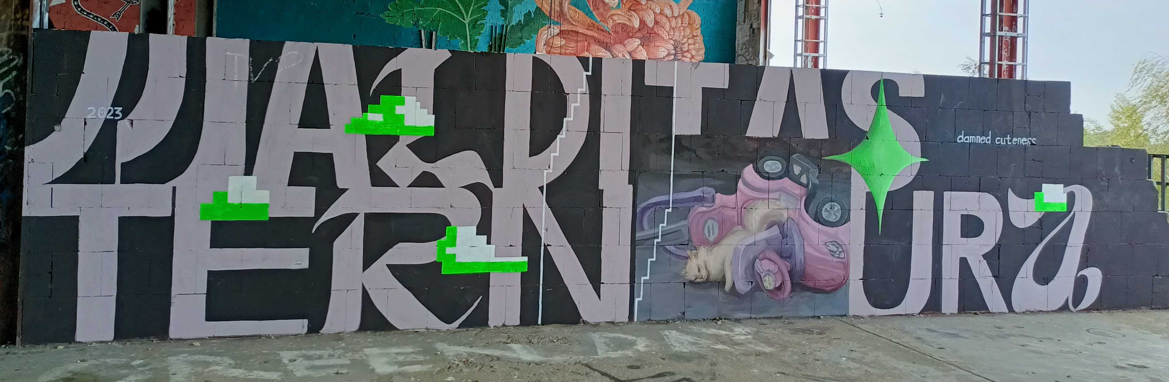 The artwork is of graffiti type. You can admire it in the city of Berlin in Germany and more precisely here : Bergstraße 87, 13591 Berlin, Germany.