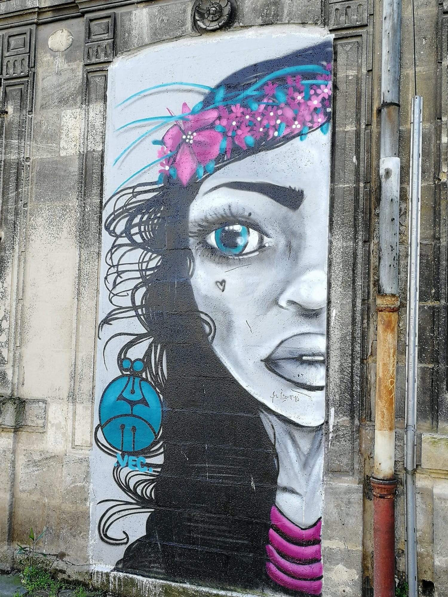 The artwork is of graffiti type. You can admire it in the city of Bordeaux in France and more precisely here : 2 Rue de Son-Tay, 33800 Bordeaux, France.