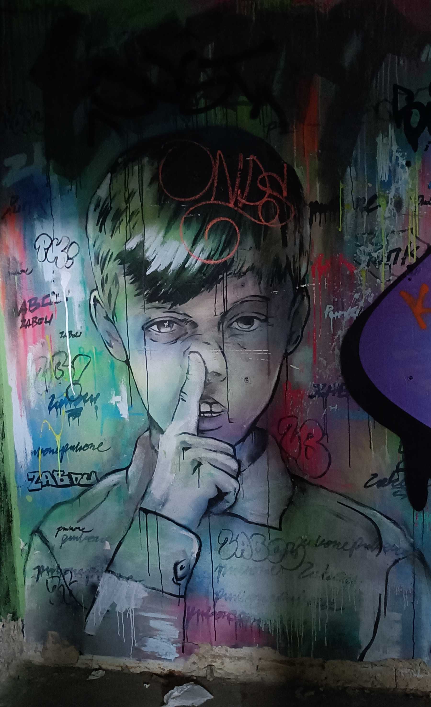 The artwork is of graffiti type. You can admire it in the city of Berlin in Germany and more precisely here : Angerburger Allee 2, 14055 Berlin, Germany.