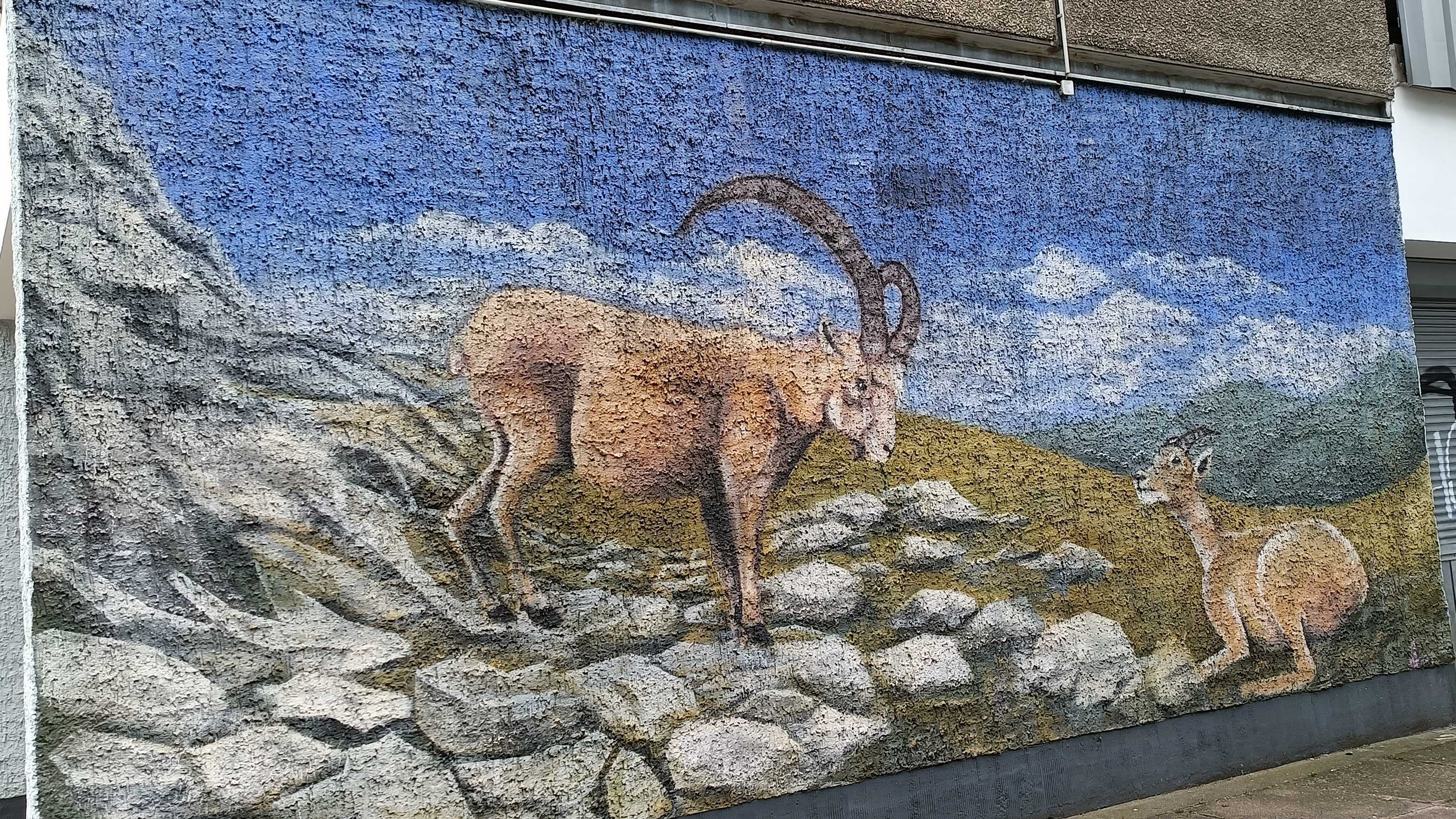 The artwork is of graffiti type. You can admire it in the city of Berlin in Germany and more precisely here : Weißenseer Weg 2, 10367 Berlin, Germany.